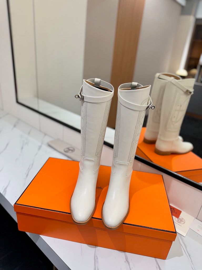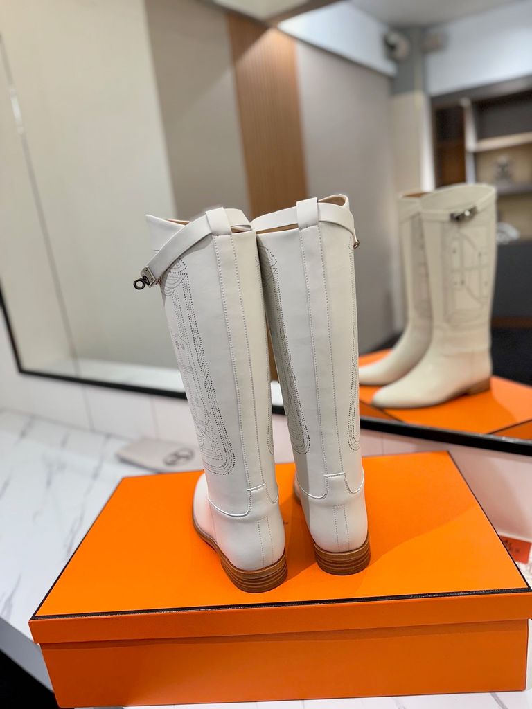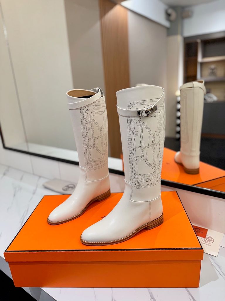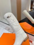 BOOT NỮ HERM* JUMPING KELLY DA BÒ TRẮNG GÓT THẤP THANH LỊCH 3800k (HÀNG ORDER QUỐC TẾ)