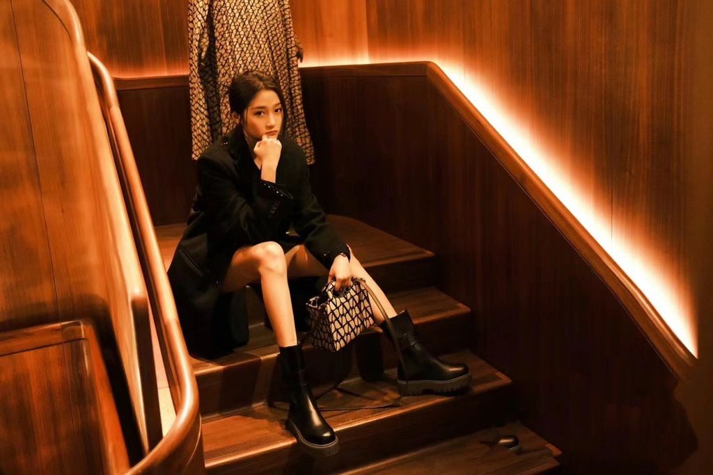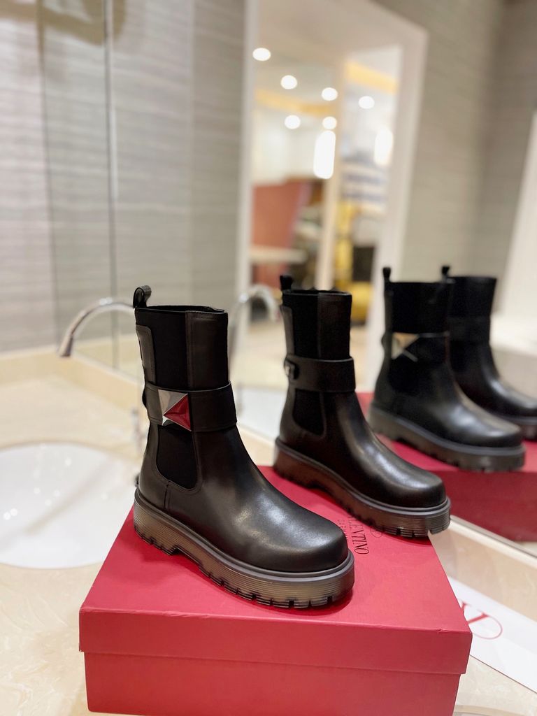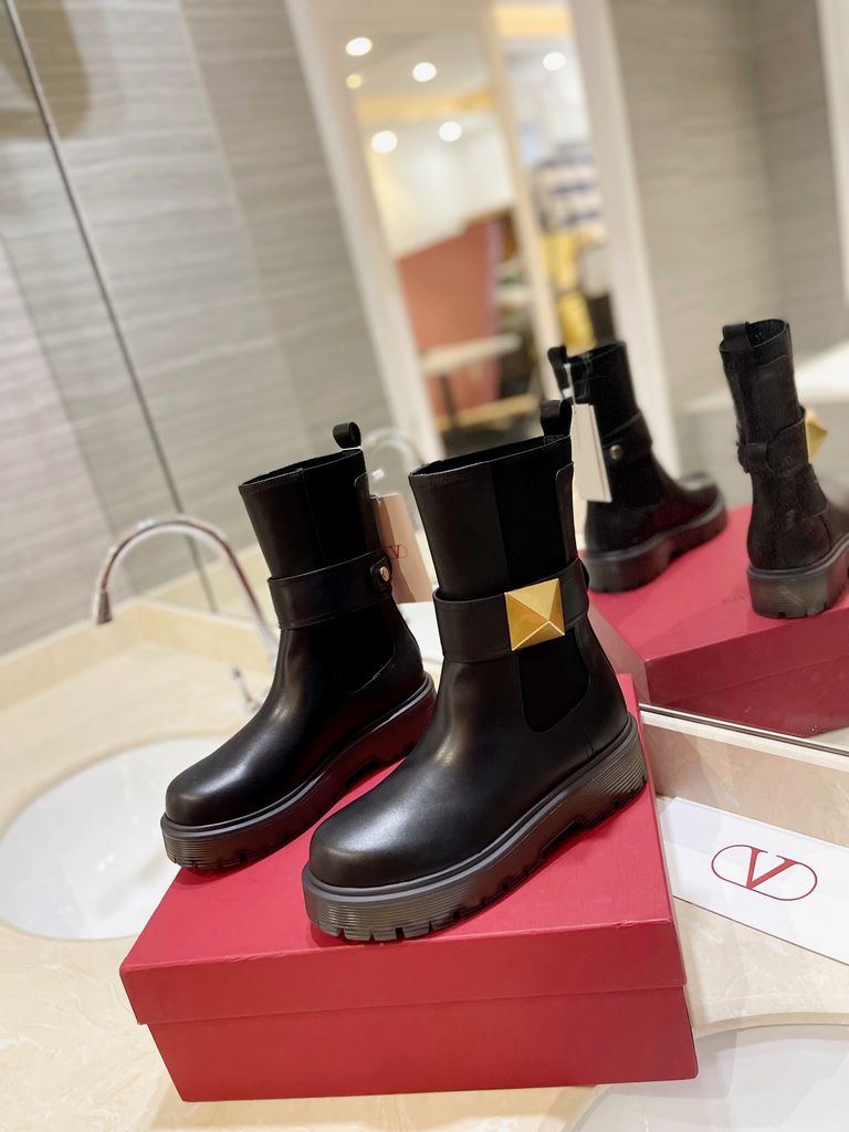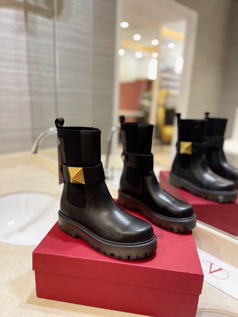 BOOT NỮ VALEN* ONE STUD – GÓT 4.5CM, CỔ LỬNG SANG TRỌNG, ĐINH TÁN BẢN LỚN TONE-SUR-TONE 2200k (HÀNG ORDER QUỐC TẾ)