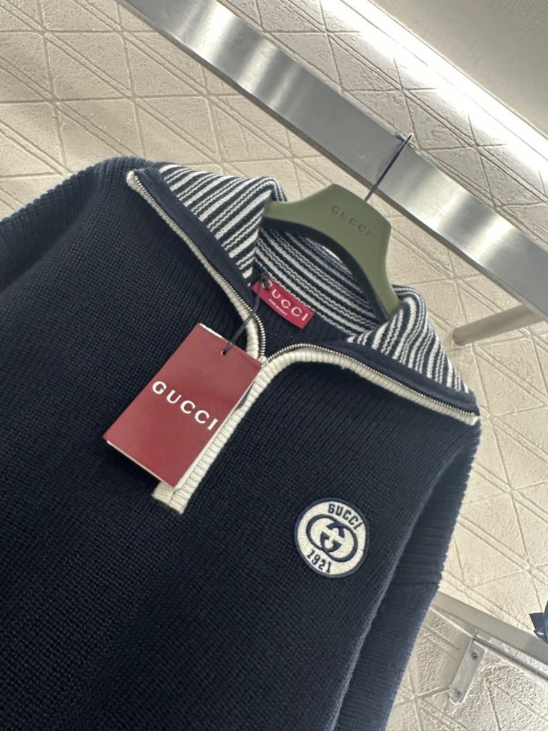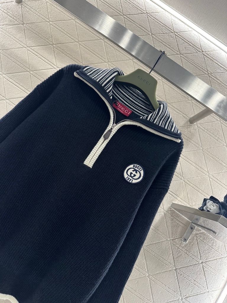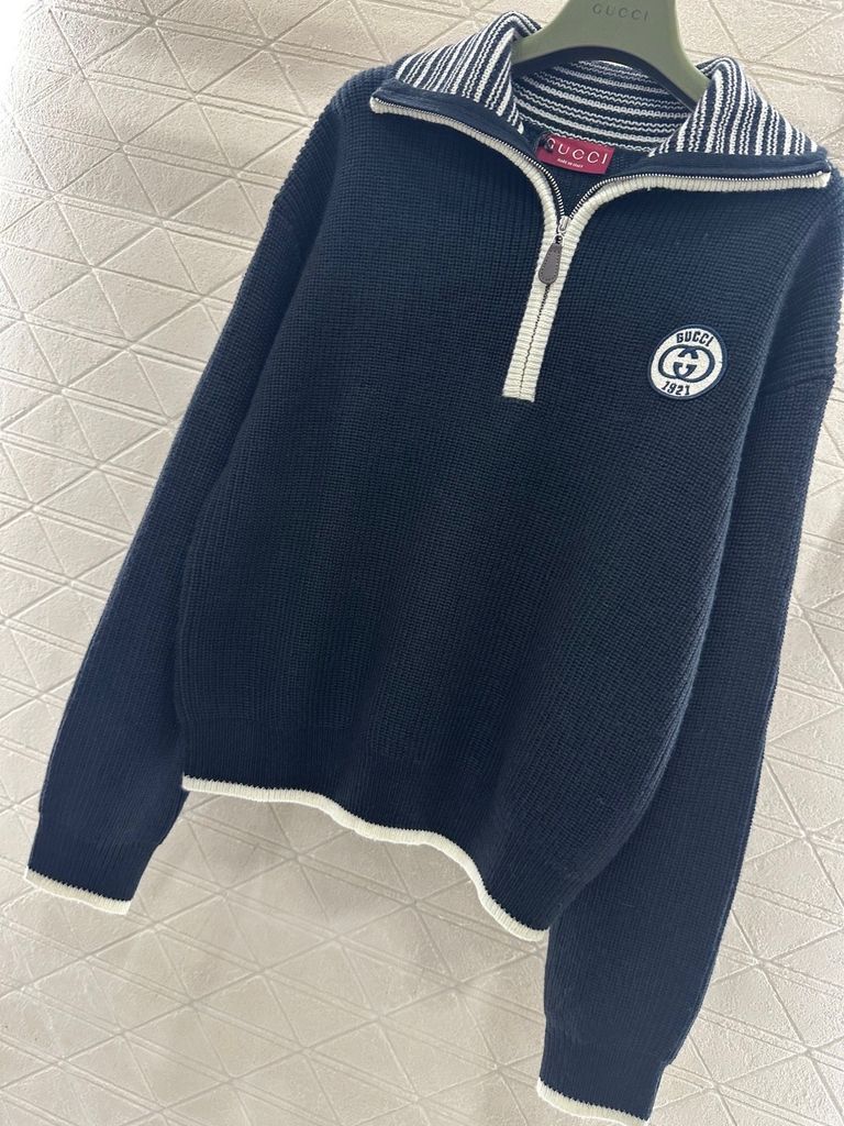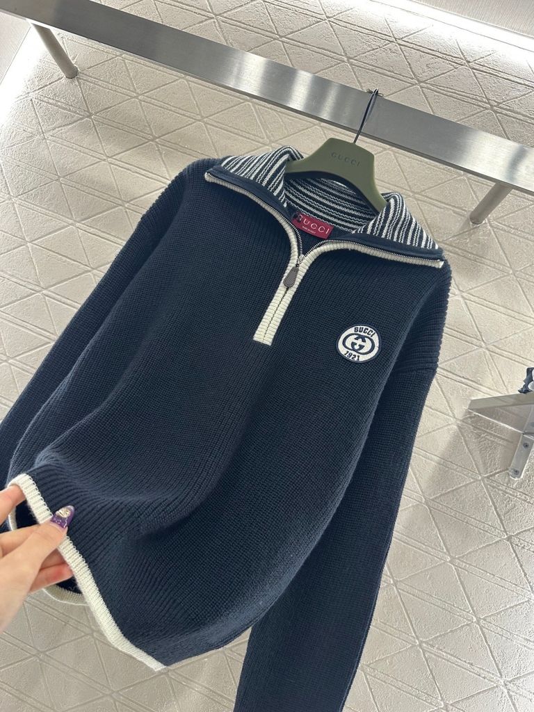 ÁO LEN UNISEX GC CỔ POLO KHOÁ NỬA – BIỂU TƯỢNG GG THÊU NỔI, FORM ĐẸP SANG TRỌNG 1450k (HÀNG ORDER QUỐC TẾ)