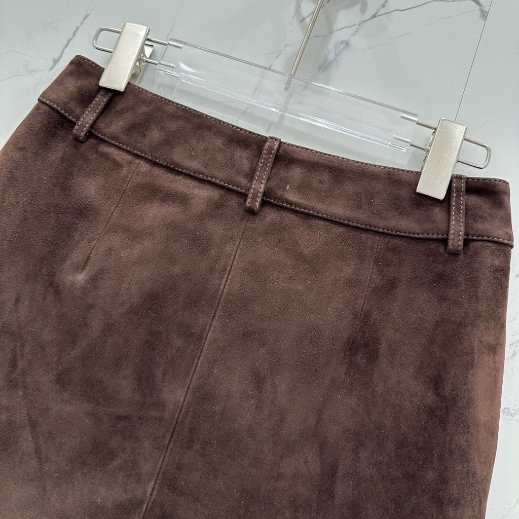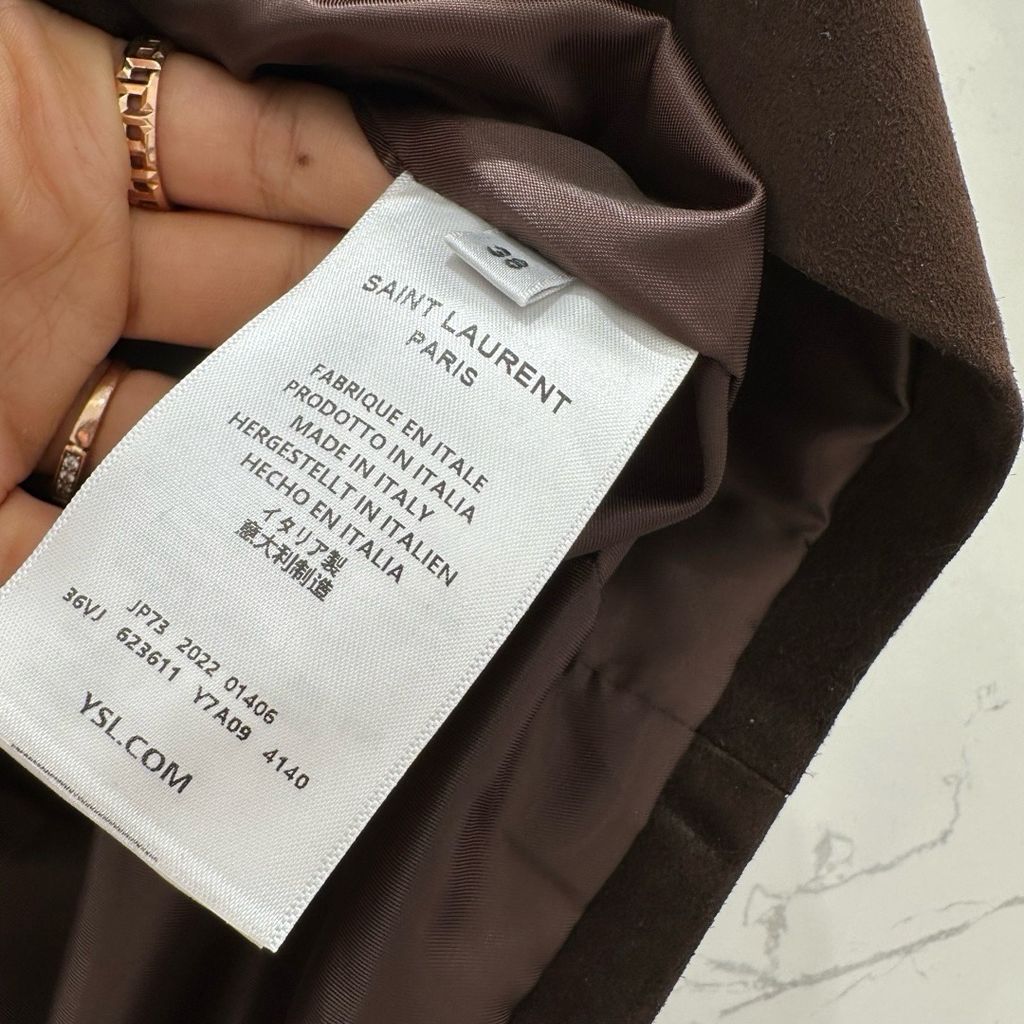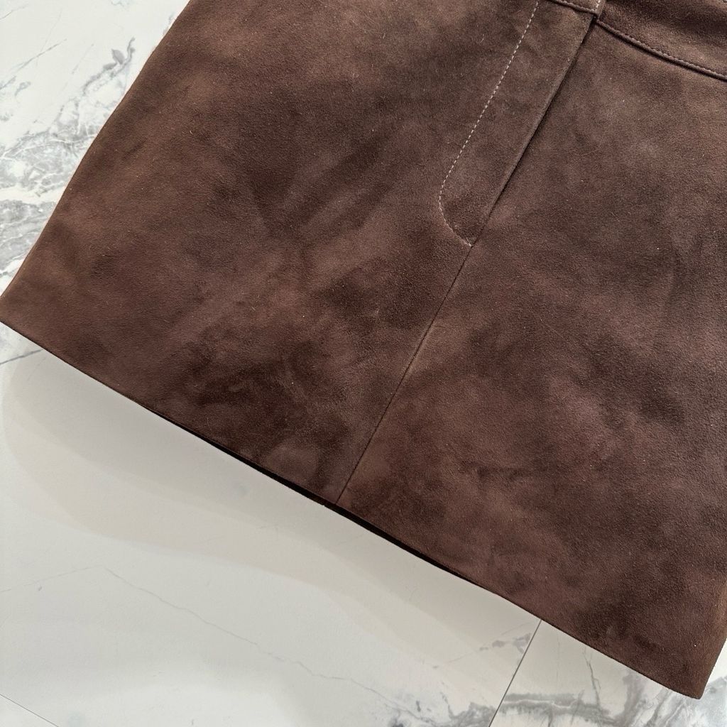 CHÂN VÁY NỮ YSL DA LỘN NÂU VINTAGE MINI – PHOM A-LINE TÔN DÁNG (HÀNG ORDER QUỐC TẾ)