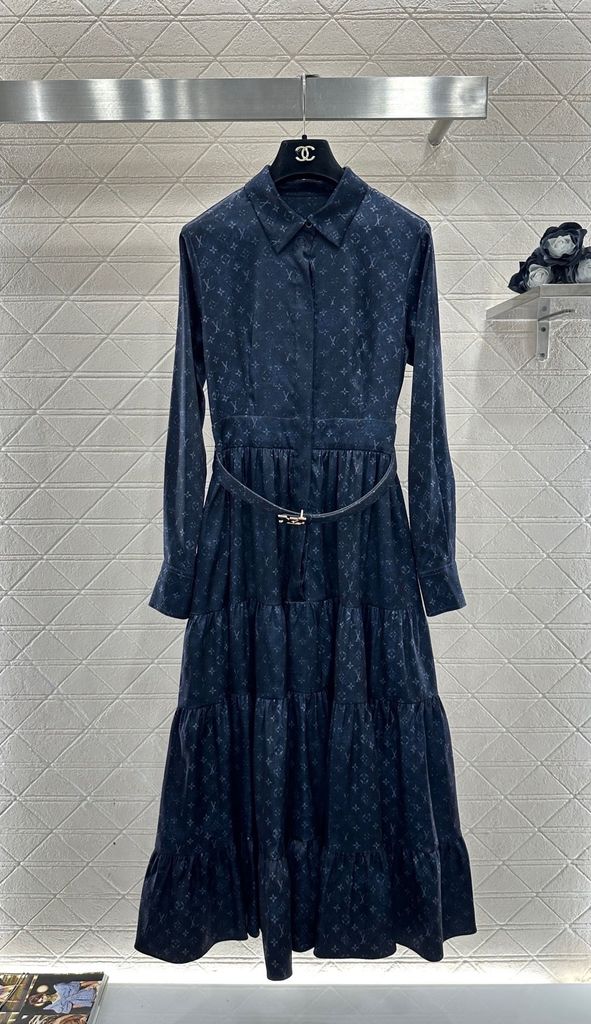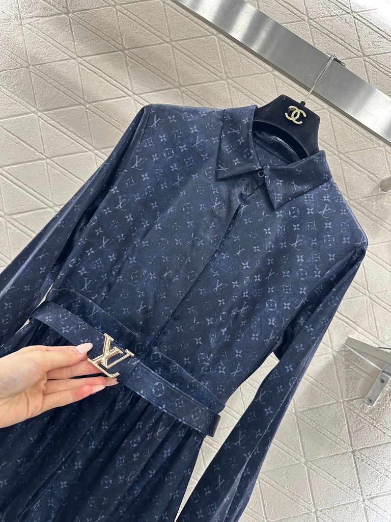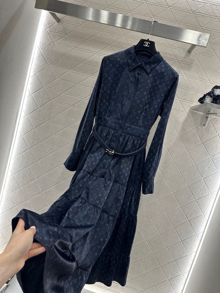 ĐẦM SƠ MI NỮ L V HOẠ TIẾT MONOGRAM – CHIẾT EO DÂY ĐAI, PHOM DÀI TÔN DÁNG 2050k (HÀNG ORDER QUỐC TẾ)