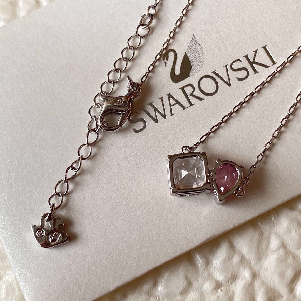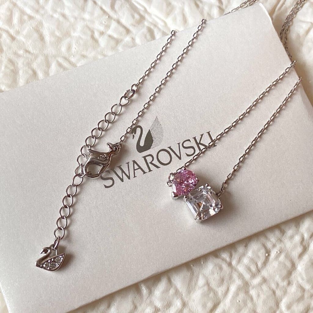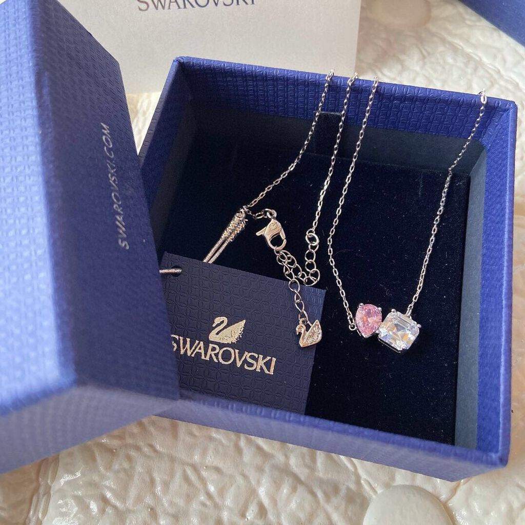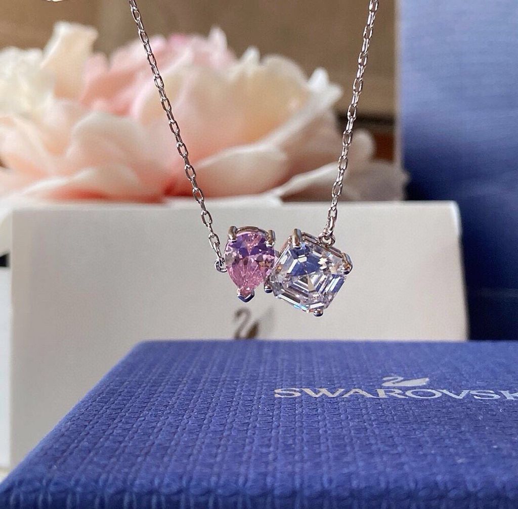 Vòng cổ trái tim Swarovski/Swarovski, tình yêu kim cương hồng, mặt dây chuyền nữ xương đòn vĩnh cửu 5517115 đi kèm thẻ mã quét truy cập