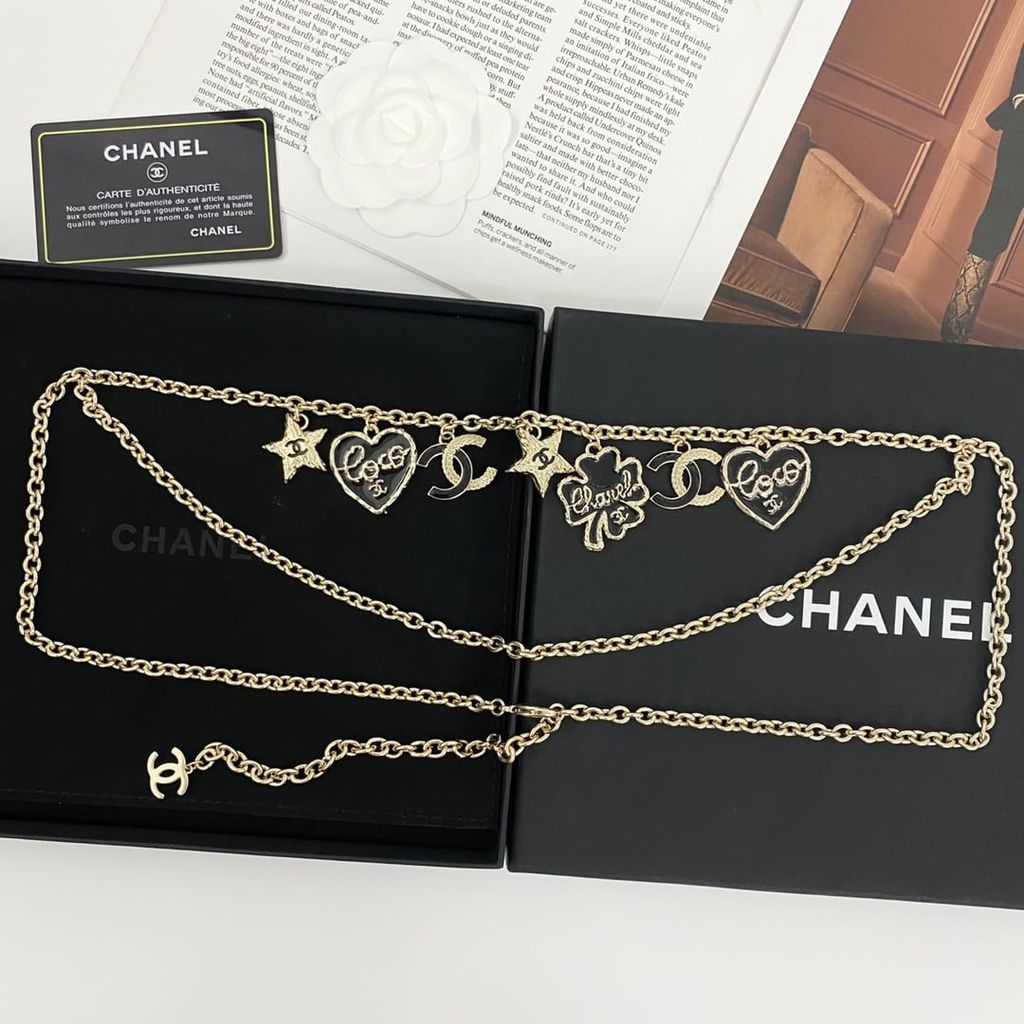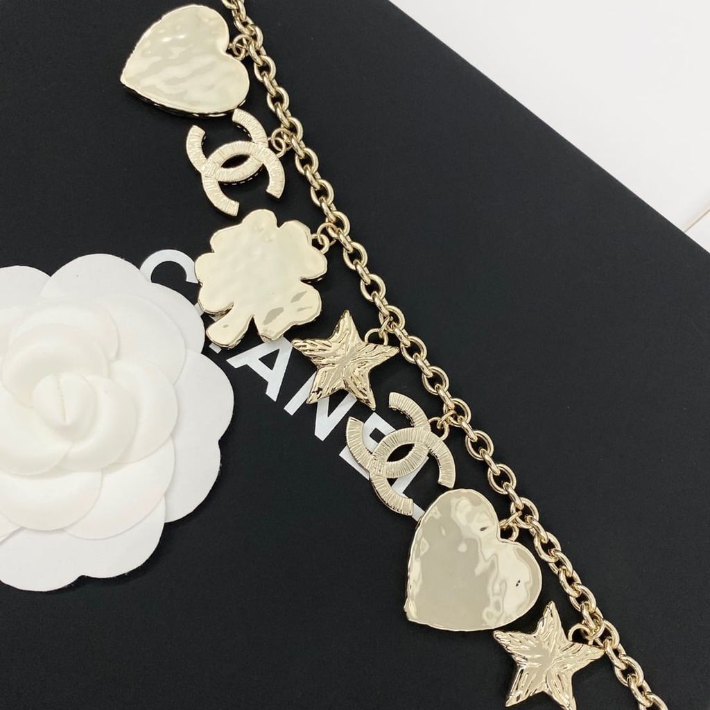 DÂY EO TRANG SỨC NỮ CN CHARM DOUBLE C – TRÁI TIM & CỎ 4 LÁ, PHỐI LAYER 2 TẦNG SANG CHẢNH 1250k (HÀNG ORDER QUỐC TẾ)
