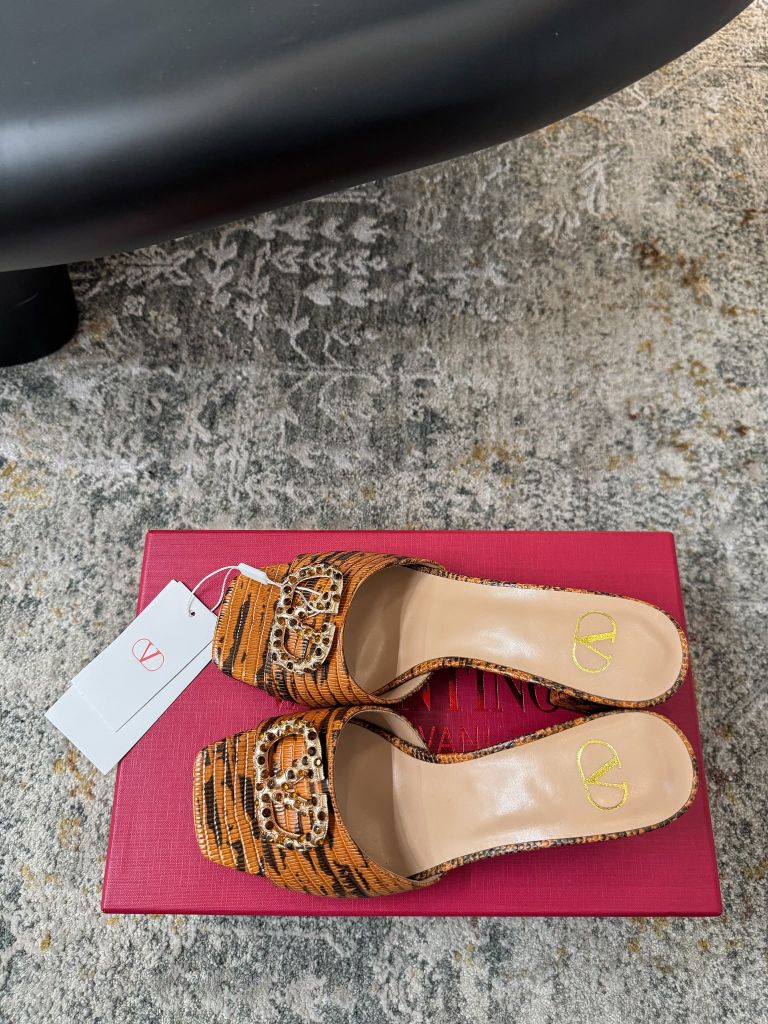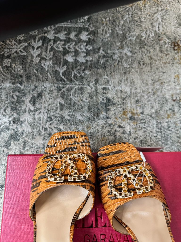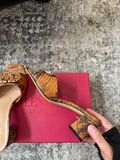 Dép cao gót VAL* phom cực tây, bản quai bản rộng in họa tiết nghệ thuật giúp bàn chân nhìn thon gọn, lên chân vừa nữ tính vừa nổi bật trong mọi khung hình. 1700k (HÀNG ORDER QUỐC TẾ)