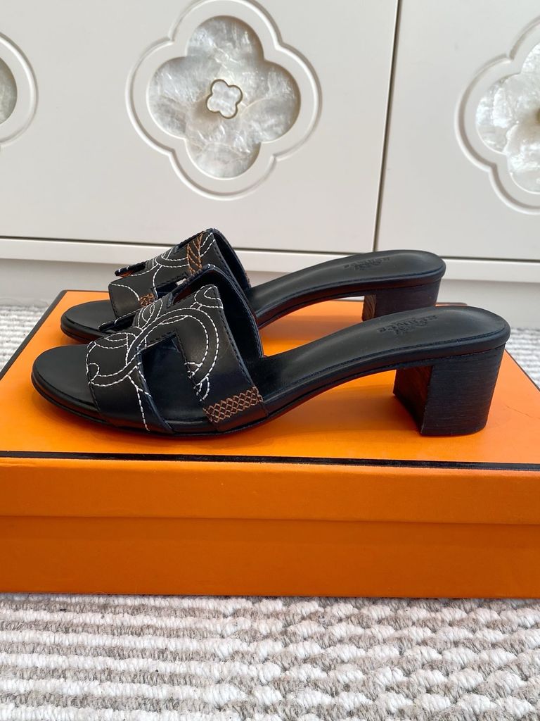SANDAL CAO GÓT NỮ HM QUAI H THÊU CHỈ NỔI HOẠ TIẾT – GÓT TRỤ 4,5CM 1650k (HÀNG ORDER QUỐC TẾ)