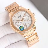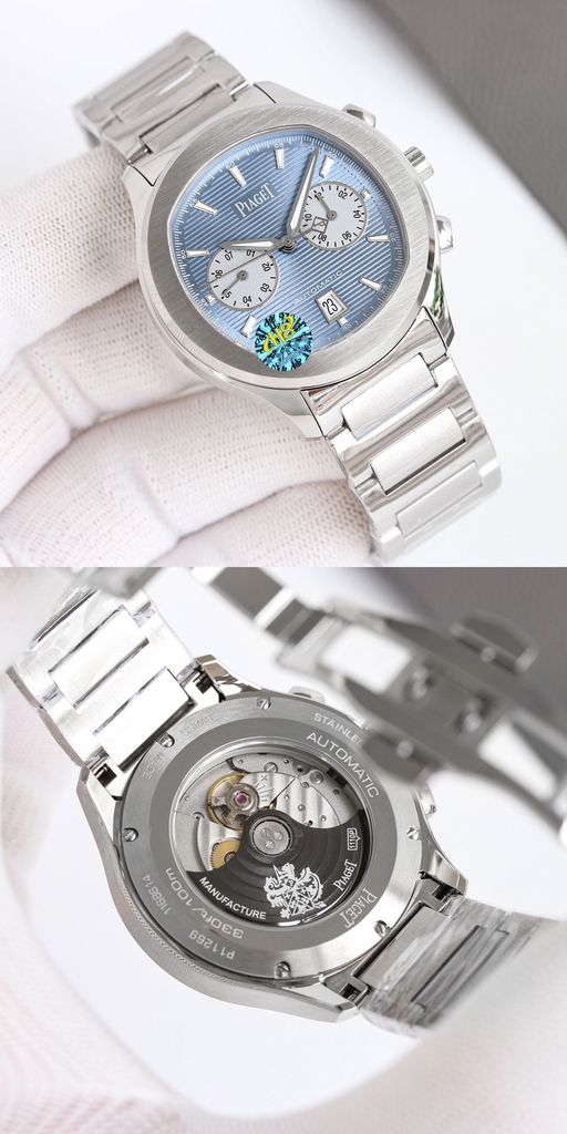 Một phiên bản Polo mang khí chất “đúng chuẩn quý ông”: nhìn gần thấy rõ độ tinh xảo của mặt vân sọc, nhìn xa lại nổi bật bởi bố cục chronograph cân đối – lên tay là ra ngay thần thái sang trọng, gọn gàng và rất có chiều sâu.