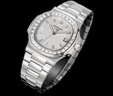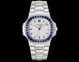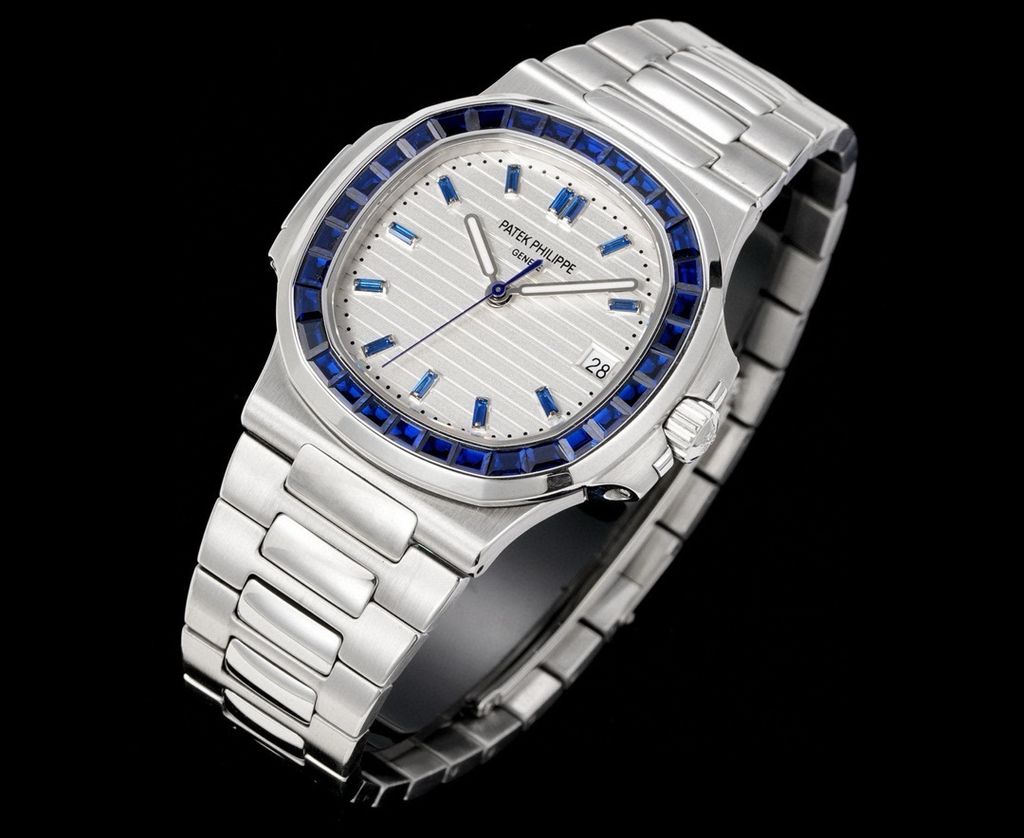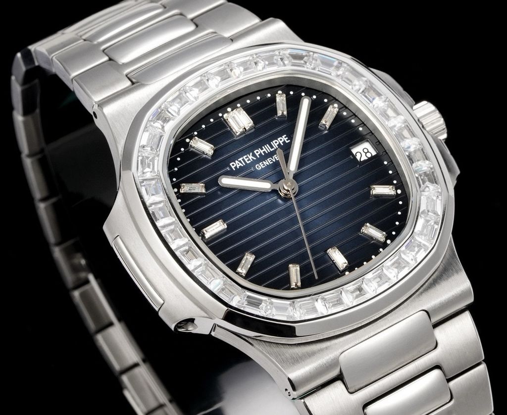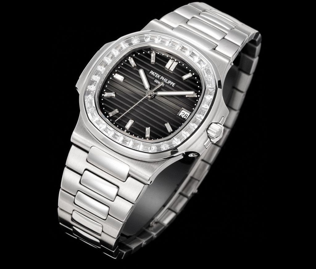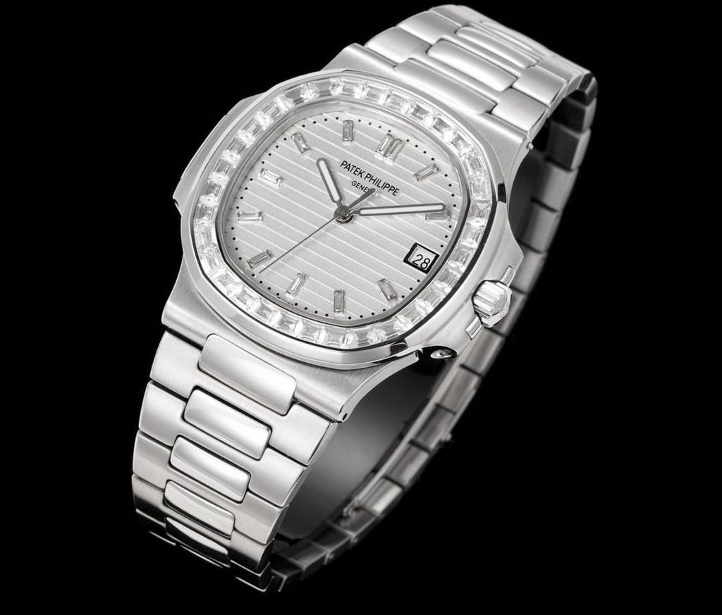 Một phiên bản Nautilus 5711 được nâng cấp theo tinh thần “sport-luxe”: tối giản, chuẩn tỷ lệ và tạo điểm nhấn sang trọng ngay từ đường viền nạm đá baguette. Tổng thể mang cảm giác tinh gọn trên cổ tay nhưng vẫn thể hiện rõ đẳng cấp của một biểu tượng đồng hồ thép cao cấp.