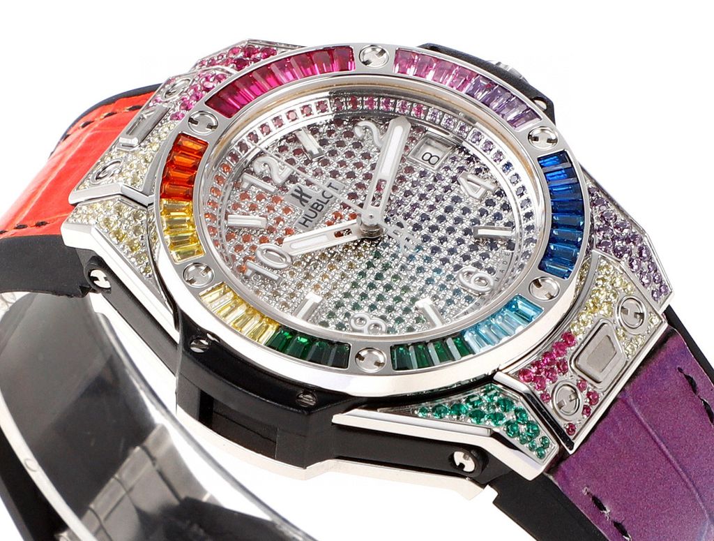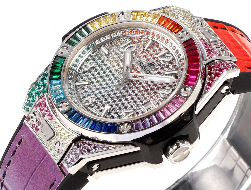 Đồng hồ cầu vồng bằng thép không gỉ “One-touch” của Hublot Big Bang Cầu vồng là biểu tượng của sự lạc quan và lãng mạn. Cũng giống như cô ấy, cô ấy lãng mạn một cách tự nhiên và toát lên vẻ quyến rũ quyến rũ trong từng cử chỉ; cô ấy nhiệt tình và không kiềm chế, sẵn sàng đón nhận mọi thử thách mới trong cuộc sống; cô ấy lạc quan, cởi mở và minh bạch trước mọi khoảnh khắc thay đổi của cuộc sống. Tuân thủ tinh thần thương hiệu "Nghệ thuật kết hợp", Hublot đã thiết kế chiếc đồng hồ cầu vồng bằng thép không gỉ "một chạm" Big Bang Hiện tượng quang học thoáng qua nhưng những kỳ vọng đẹp đẽ sẽ được khắc phục trên cổ tay.