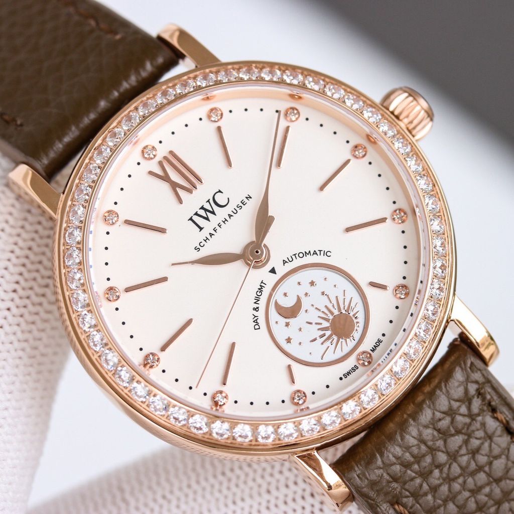 ĐỒNG HỒ NỮ IWC DAY & NIGHT KIM CƯƠNG BEZEL 34MM – MÁY AUTO 35180 – WR 50M 8500k (HÀNG ORDER QUỐC TẾ)