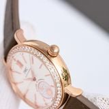 • Mặt số tối giản với cọc số đính đá, kim & cọc hoàn thiện sắc nét; điểm nhấn ô Day & Night trang trí mặt trời – mặt trăng, thay đổi theo chu kỳ ngày/đêm (24h/1 vòng).