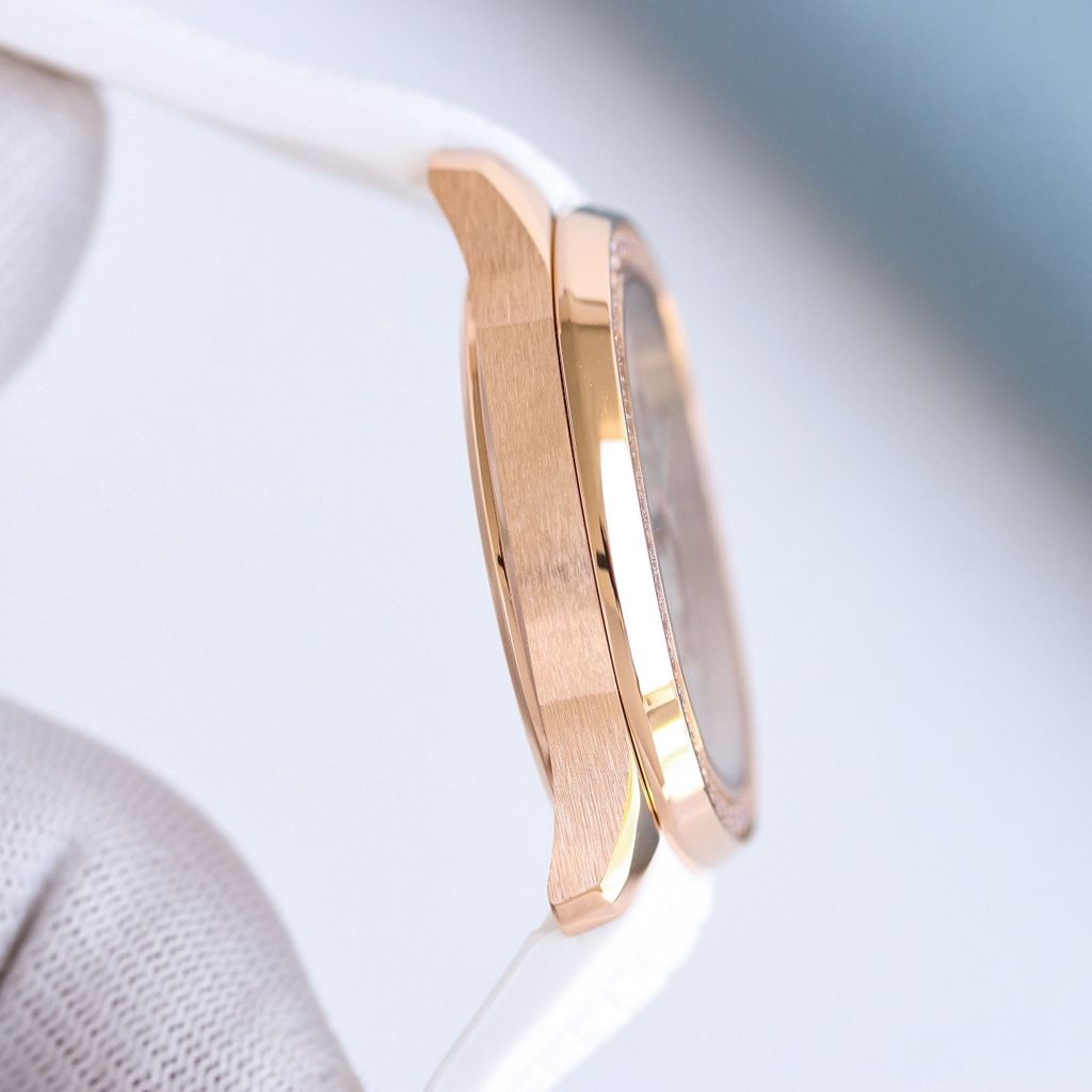 • Viền đính 48 viên đá chạy đều quanh bezel, hiệu ứng bắt sáng tinh tế, không phô trương.