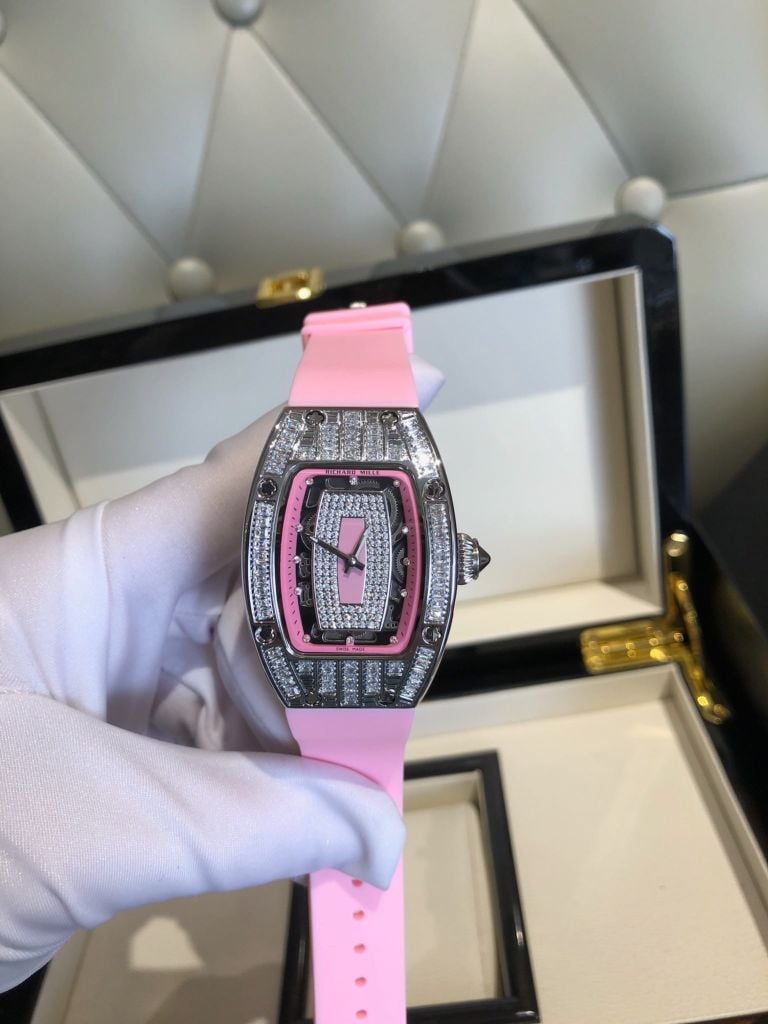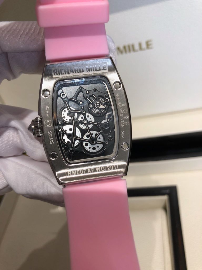 ĐỒNG HỒ NỮ RM 007 FORM TONNEAU LỘ CƠ HAI MẶT NẠM ĐÁ BAGUETTE PHIÊN BẢN NÂNG CẤP 8800k (HÀNG ORDER QUỐC TẾ)