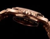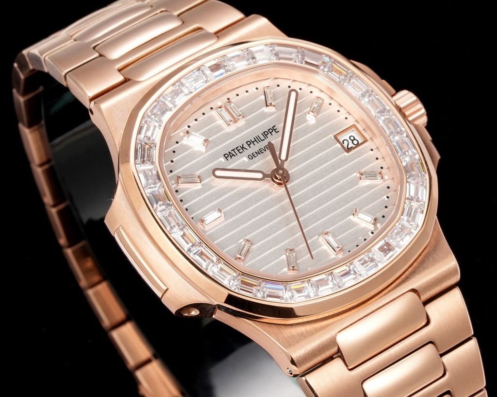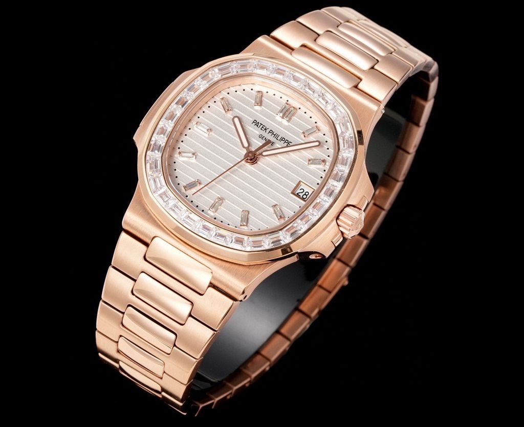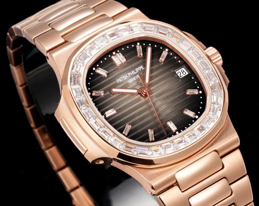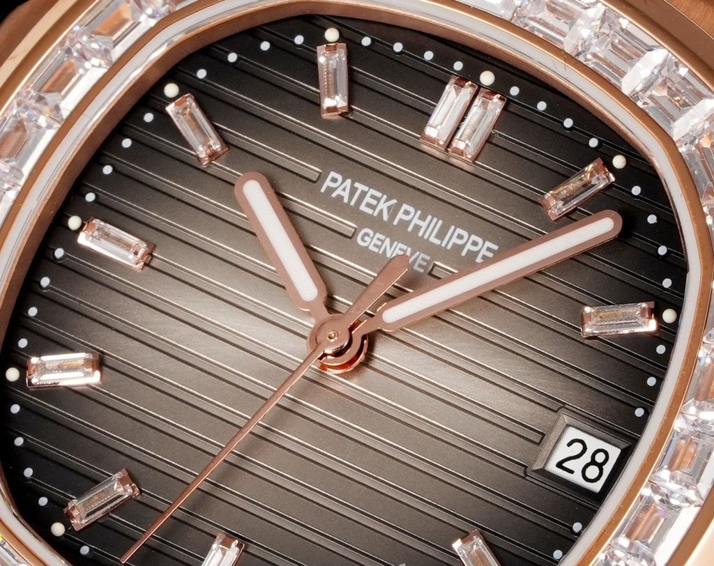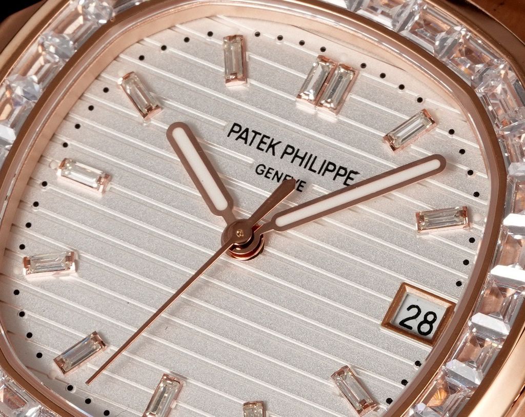 Một phiên bản Nautilus 5711 được nâng cấp theo tinh thần “sport-luxe”: tối giản, chuẩn tỷ lệ và tạo điểm nhấn sang trọng ngay từ đường viền nạm đá baguette. Tổng thể mang cảm giác tinh gọn trên cổ tay nhưng vẫn thể hiện rõ đẳng cấp của một biểu tượng đồng hồ thép cao cấp.