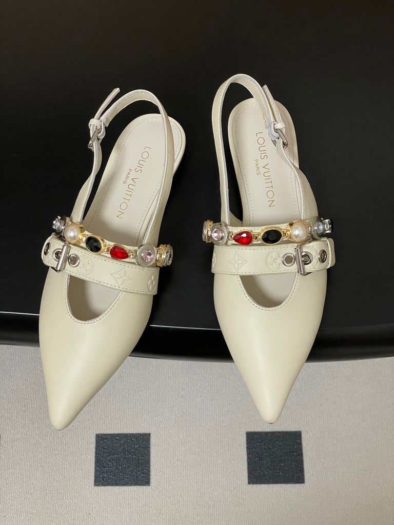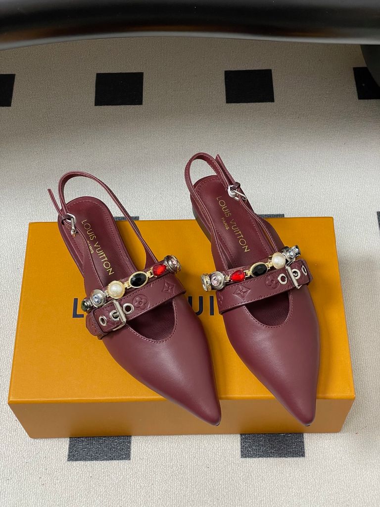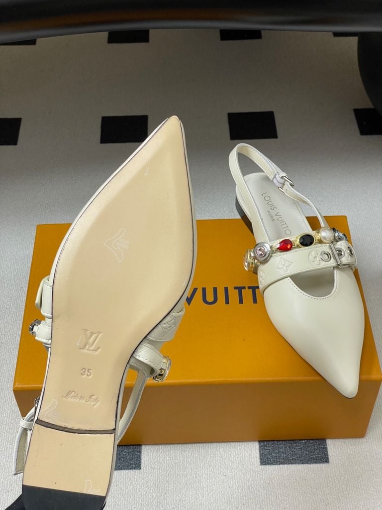 GIÀY NỮ L V VIBE ĐÍNH CHARM ĐÁ QUÝ SANG TRỌNG – MŨI NHỌN SLINGBACK TÔN DÁNG 2150K (HÀNG ORDER QUỐC TẾ)
