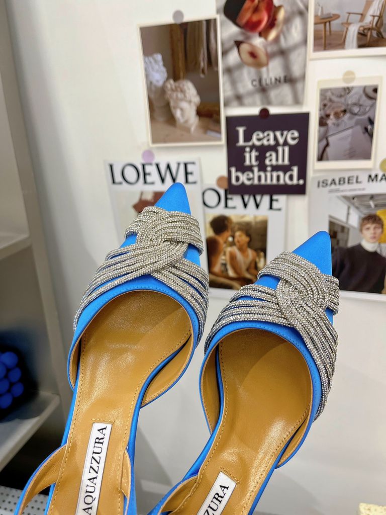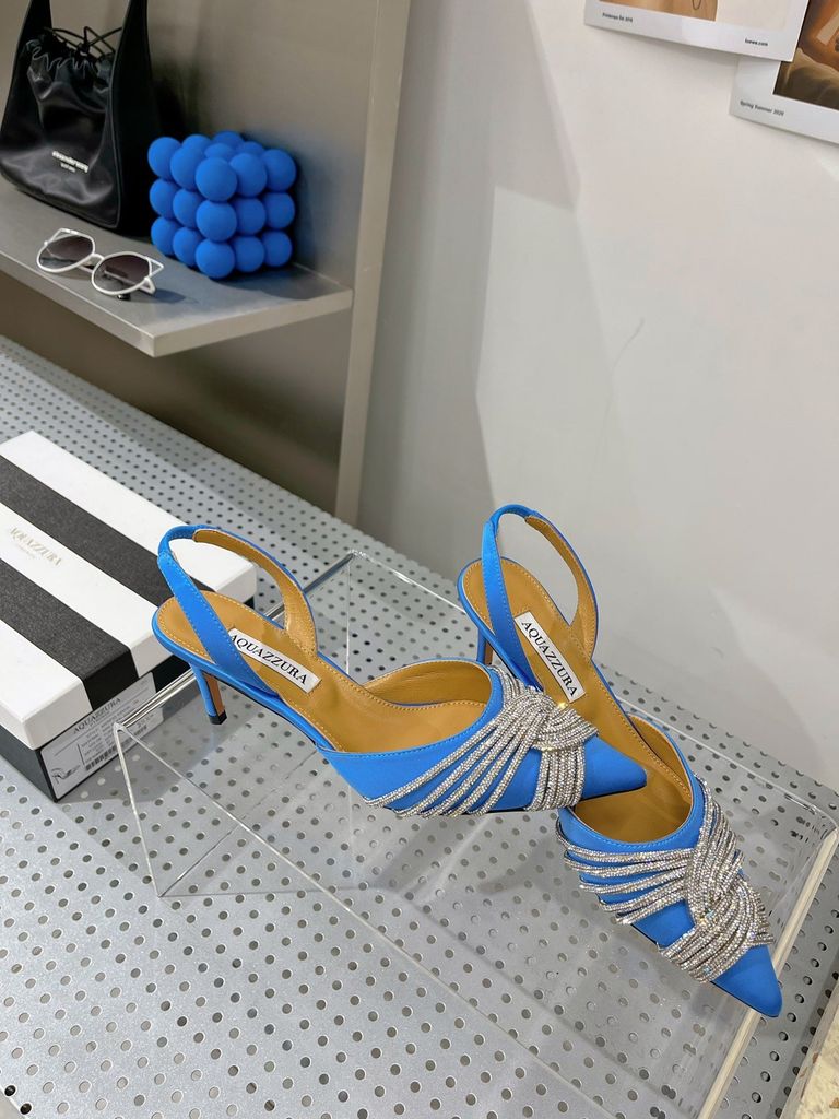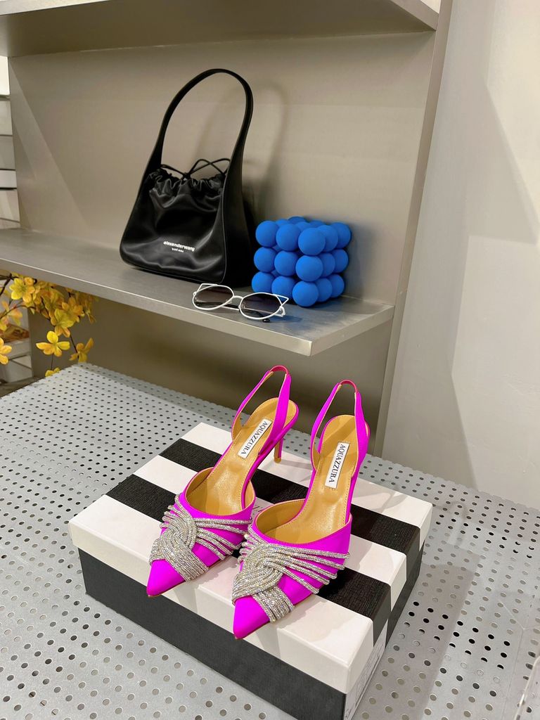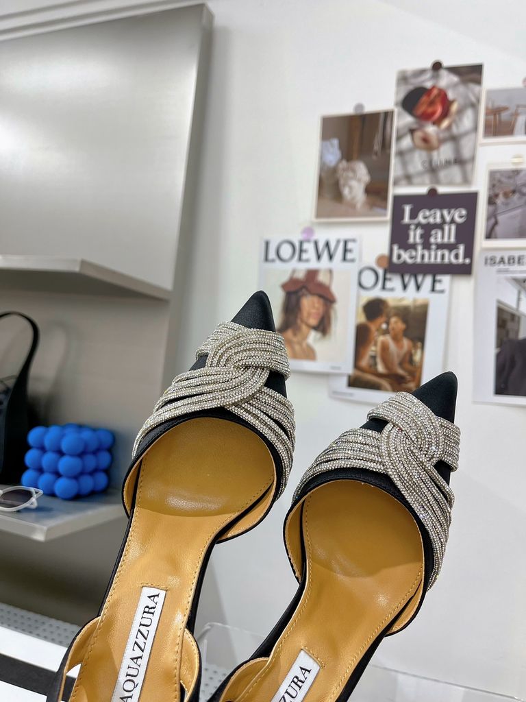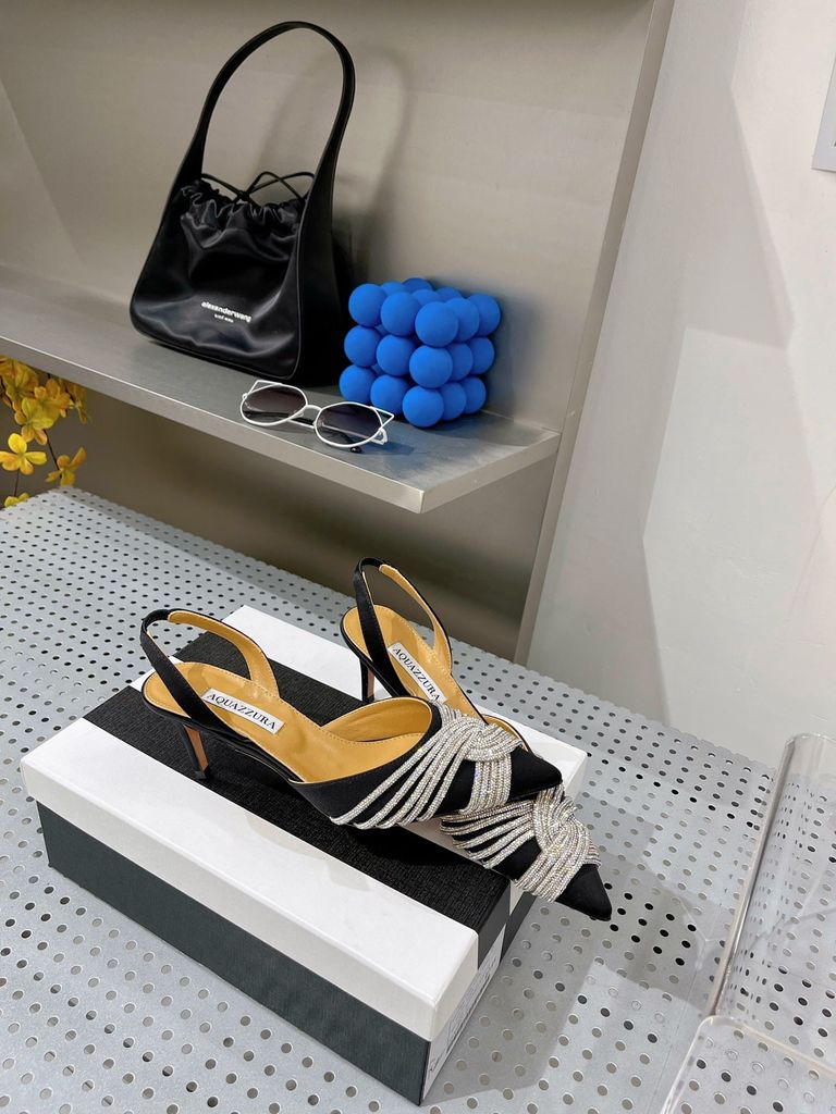 GIÀY CAO GÓT NỮ AQ* – LỤA NƠ SỌC SLINGBACK, HAI MỨC GÓT 6.5/10.5CM 1600k