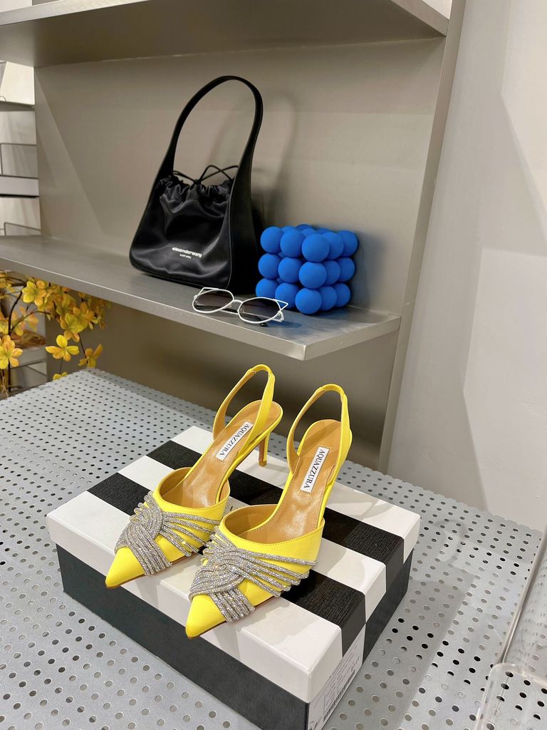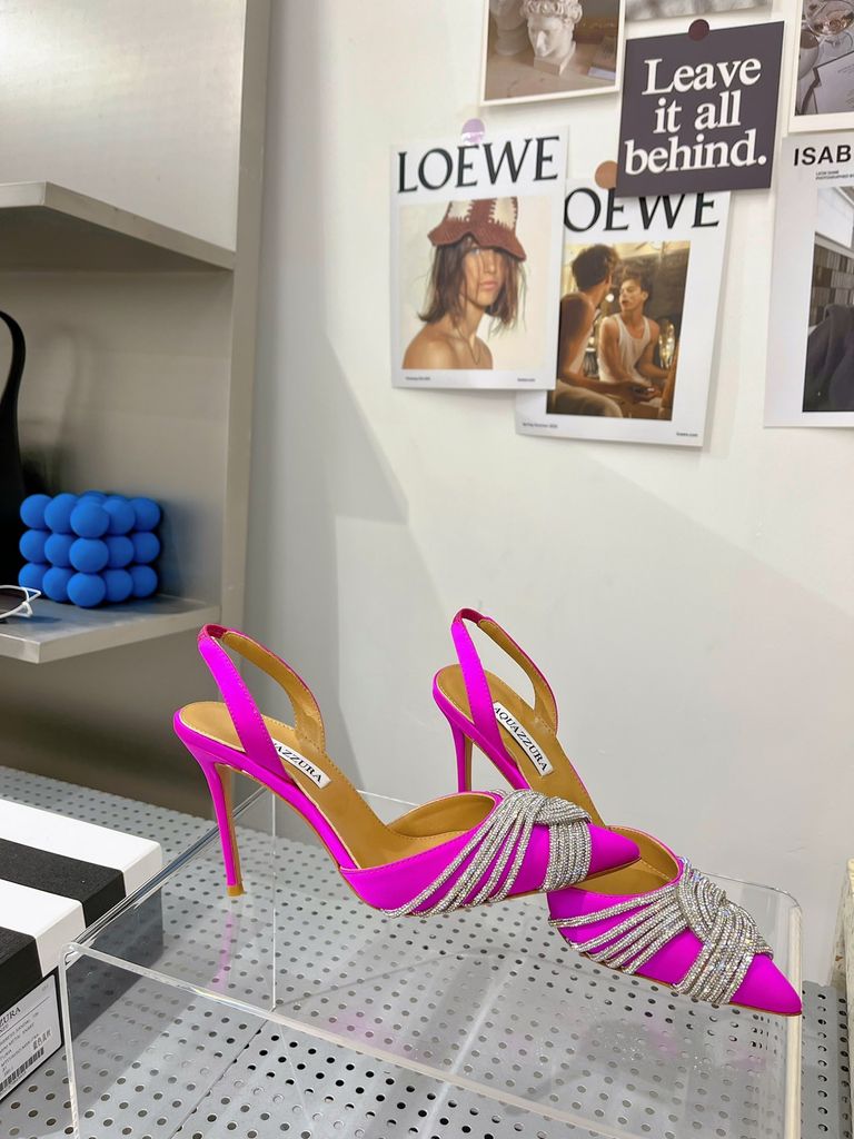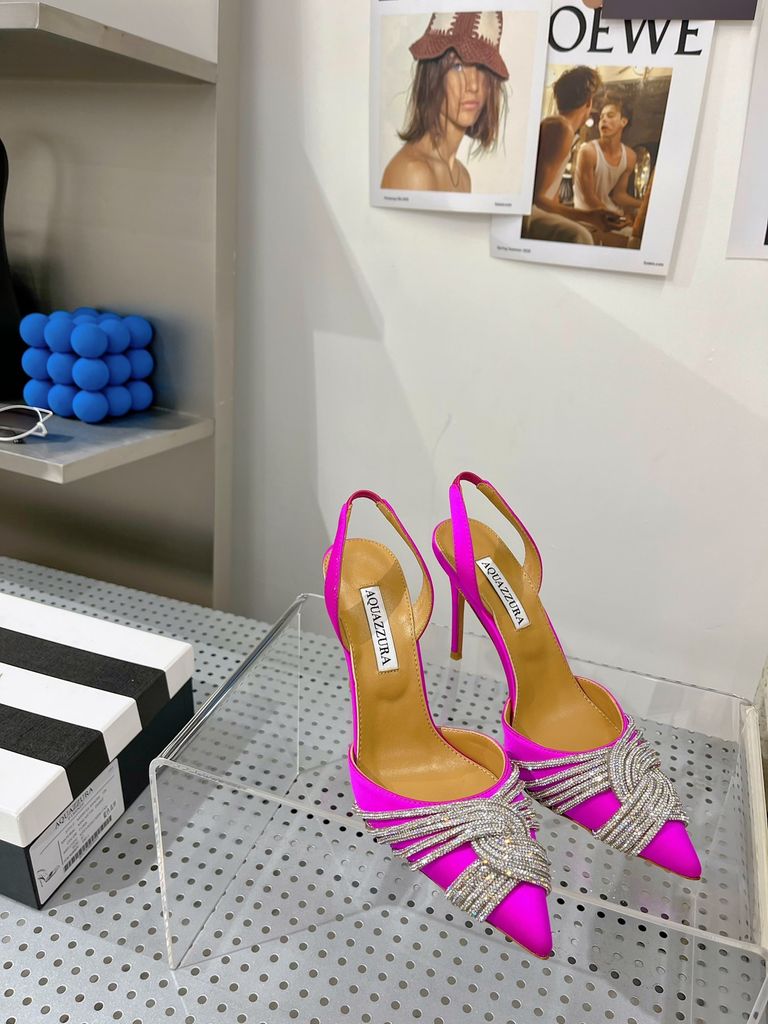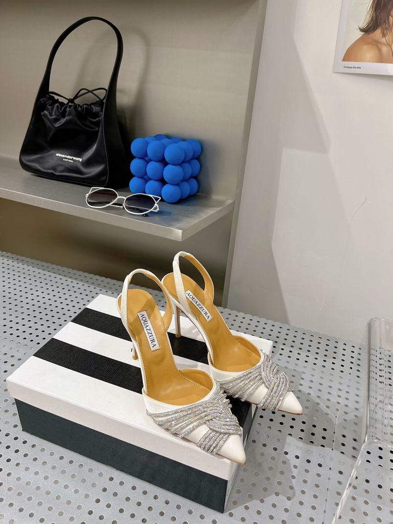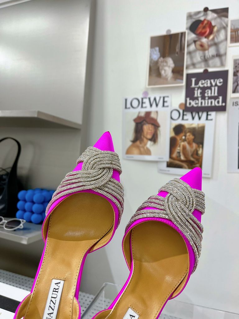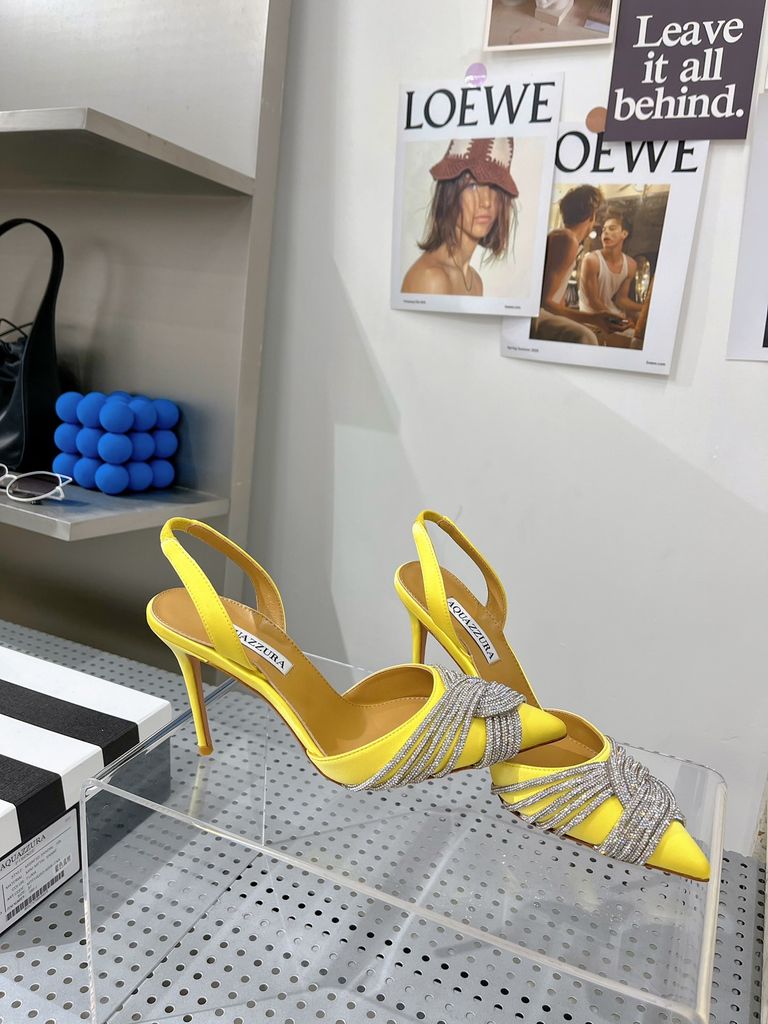 GIÀY CAO GÓT NỮ AQ* – LỤA NƠ SỌC SLINGBACK, HAI MỨC GÓT 6.5/10.5CM 1600k