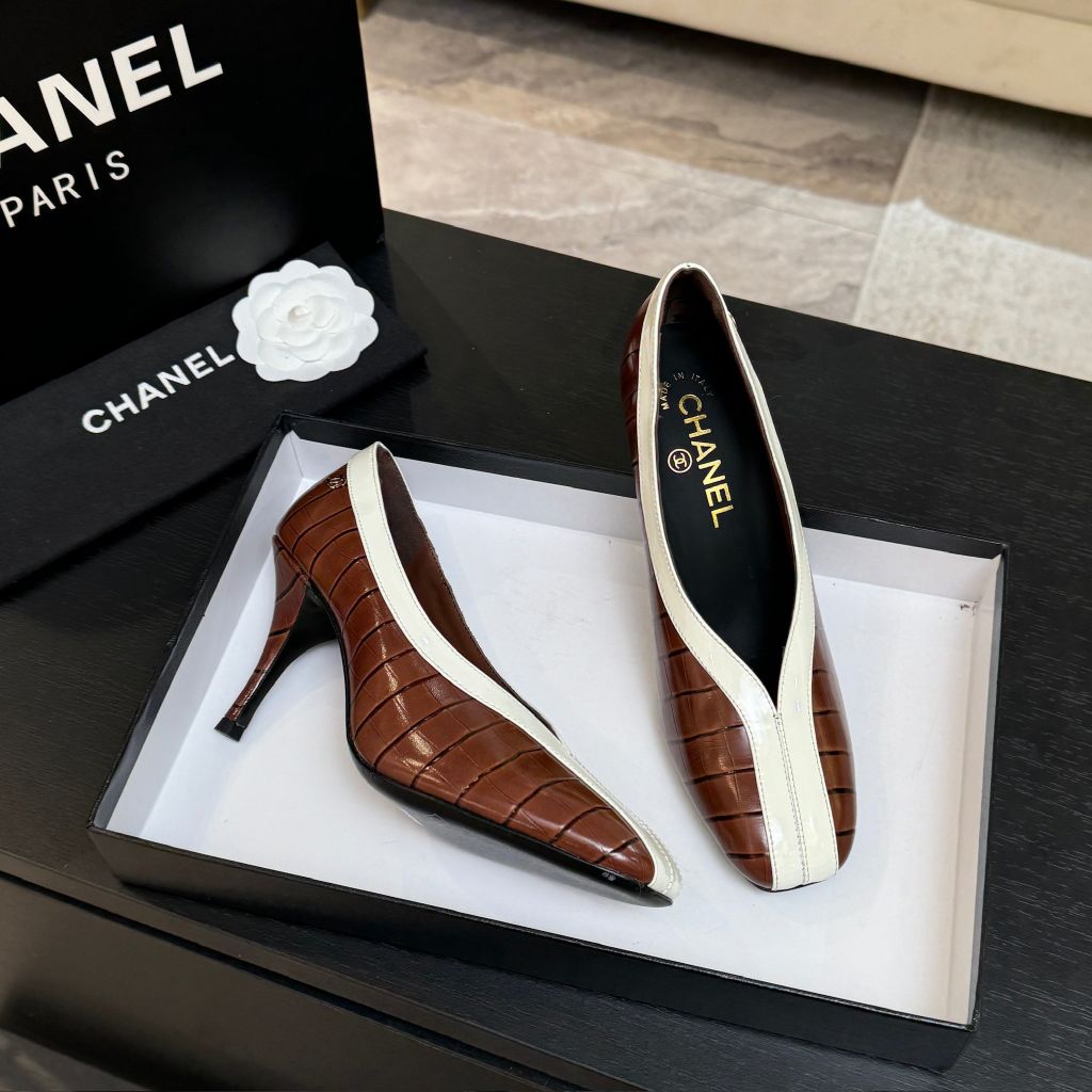 GIÀY CAO GÓT NỮ CN BST 26C LOGO DOUBLE C PHỐI 2 TÔNG – CHẦN DIAMOND SANG TRỌNG, MŨI NHỌN THANH THOÁT 1650k (HÀNG ORDER QUỐC TẾ)