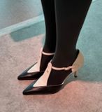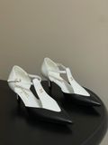 GIÀY CAO GÓT NỮ CN MŨI NHỌN DÁNG MARY JANE PHỐI MẢNG TƯƠNG PHẢN – GÓT 7.5CM TÔN CHÂN THANH MẢNH 1600k (HÀNG ORDER QUỐC TẾ)