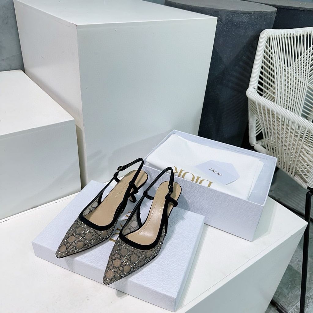 Chất lượng hàng đầu cấp đại lý mua hàng! Sàn diễn thời trang xuân hè 2025 Dior Dior mẫu mới bling...bling...lưới pha lê kim cương dép đơn giày cưới cùng phong cách của ngôi sao đính kim cương giả họa tiết gót chân mèo phiên bản cao cấp trên thị trường Độc quyền có sẵn! Trang trí kim cương nóng bỏng pha lê để trang trí!