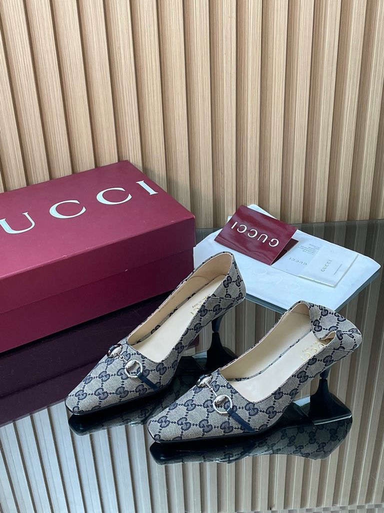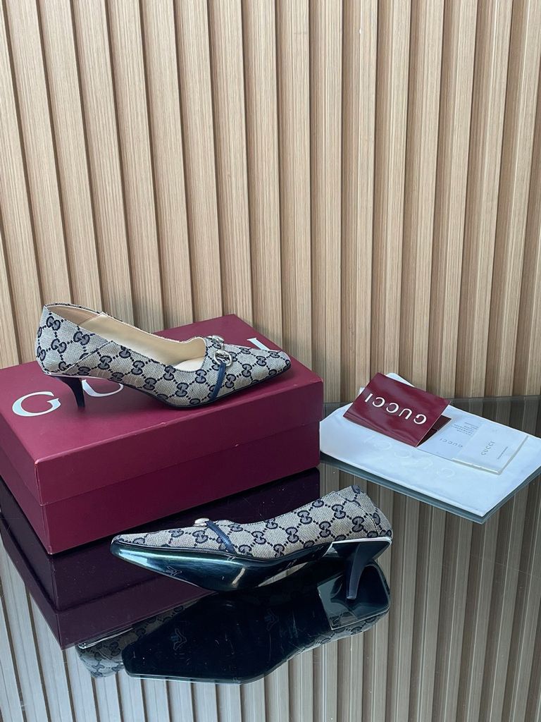 GIÀY CAO GÓT NỮ GC VITTORIA GG CANVAS KHÓA NGỰA BIỂU TƯỢNG – MŨI VUÔNG THANH LỊCH GÓT 5.5CM 1650K (HÀNG ORDER QUỐC TẾ)