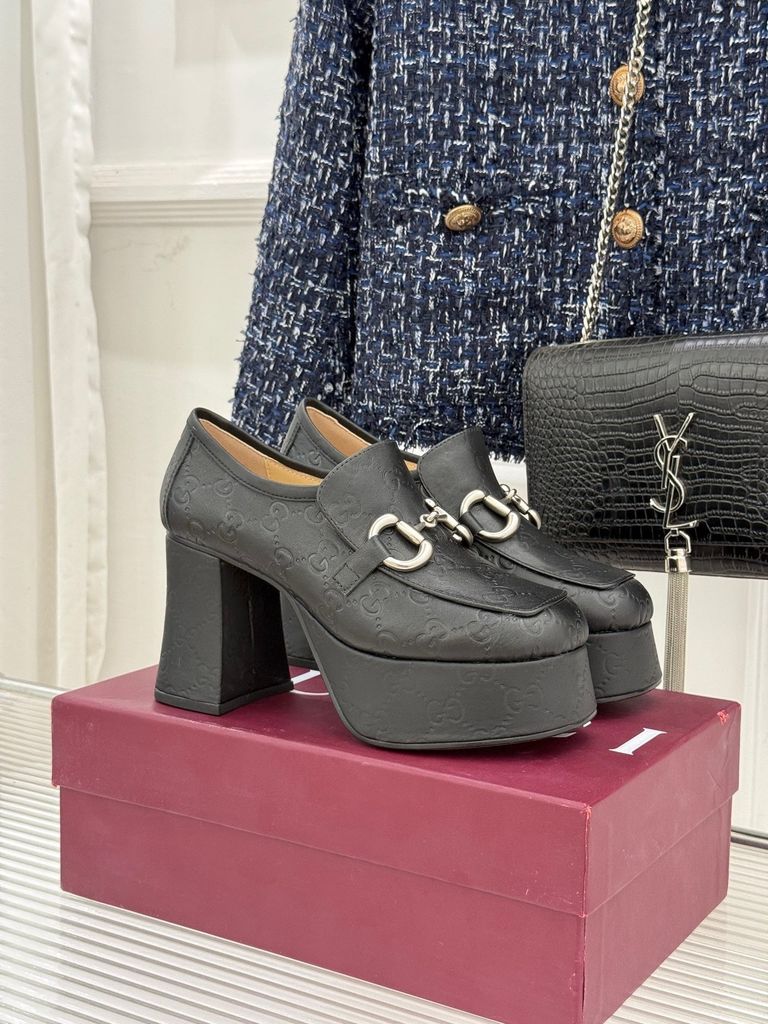 GIÀY NỮ GUCC* LOAFER GÓT THÔ MÓC NGỰA 9CM TĂNG CHIỀU CAO CHUẨN QUÝ CÔ Ý 2100k (HÀNG ORDER QUỐC TẾ)