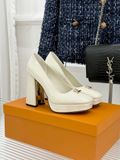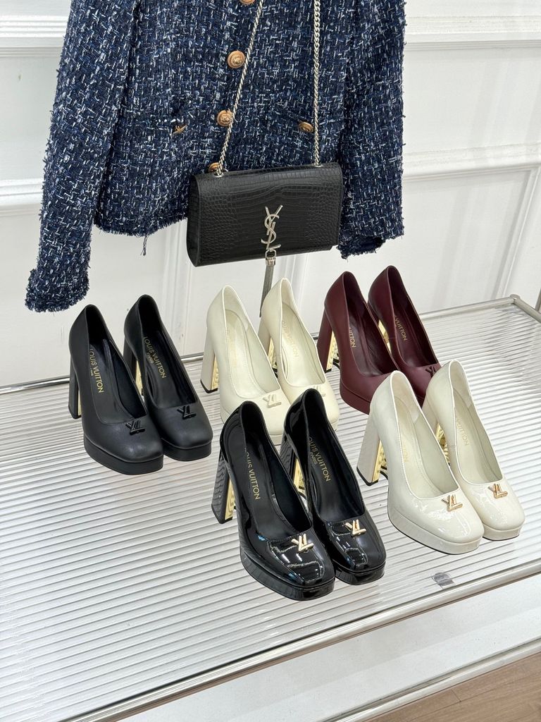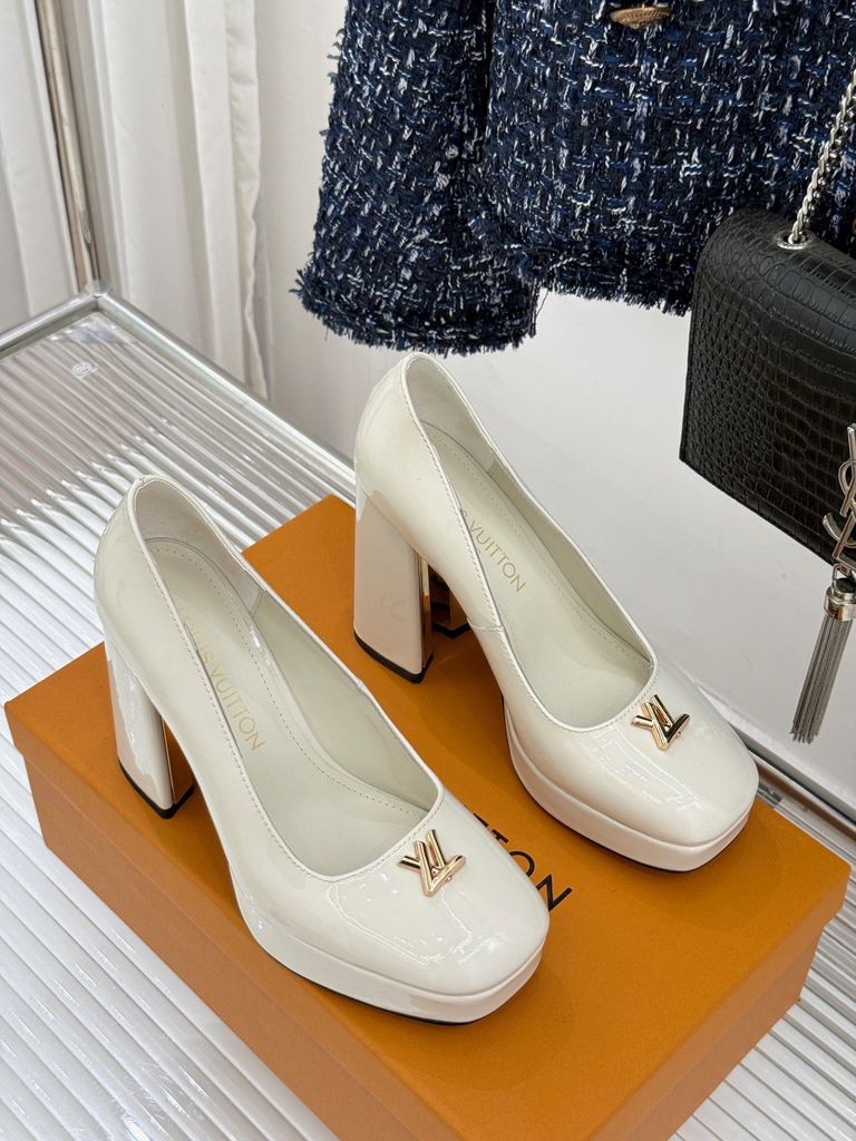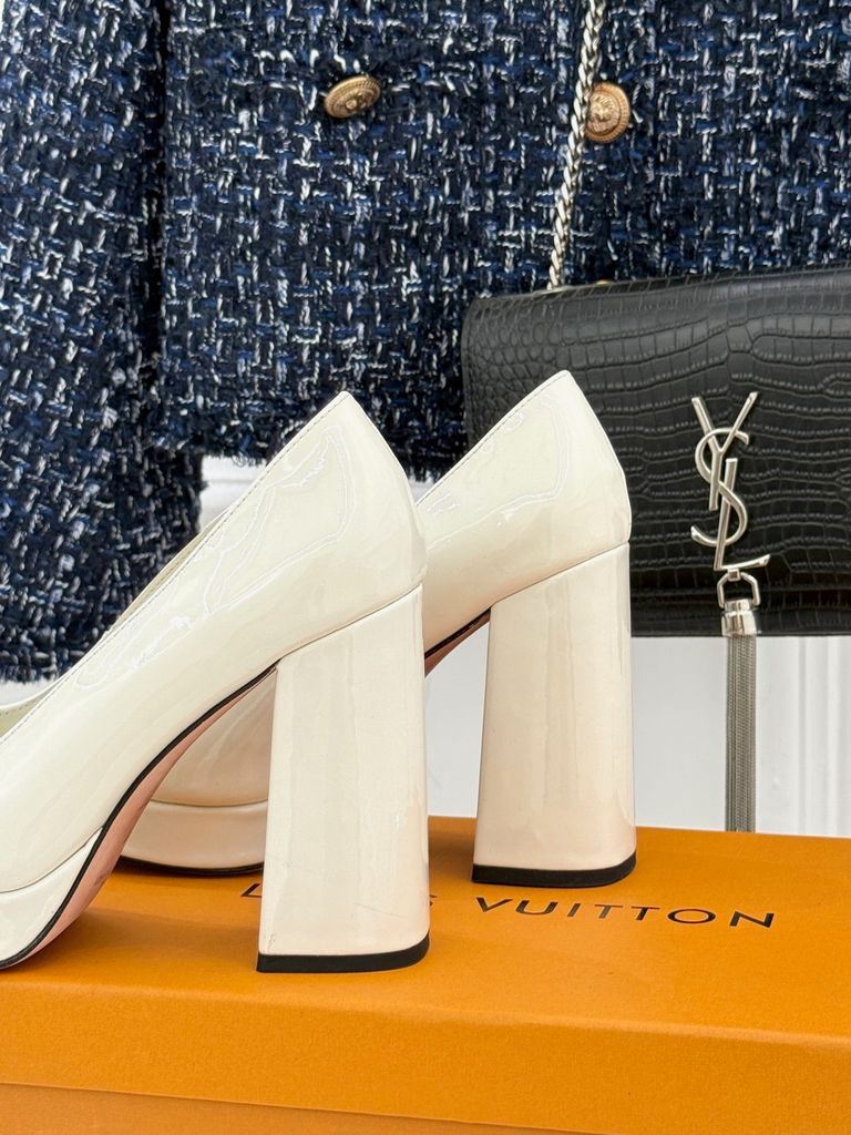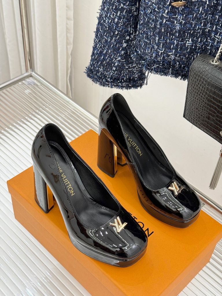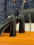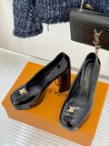 GIÀY CAO GÓT NỮ L*V GÓT VUÔNG LOGO KIM LOẠI 2 CHẤT DA BÓNG/LỲ 1900K (HÀNG ORDER QUỐC TẾ)