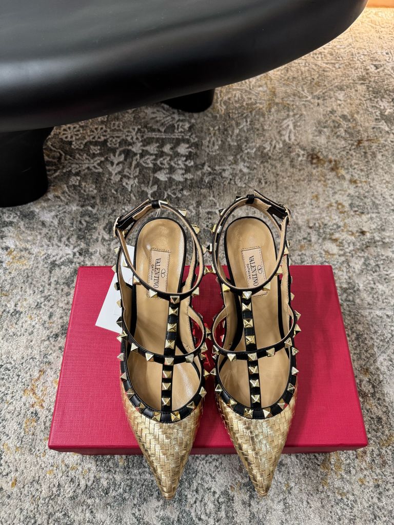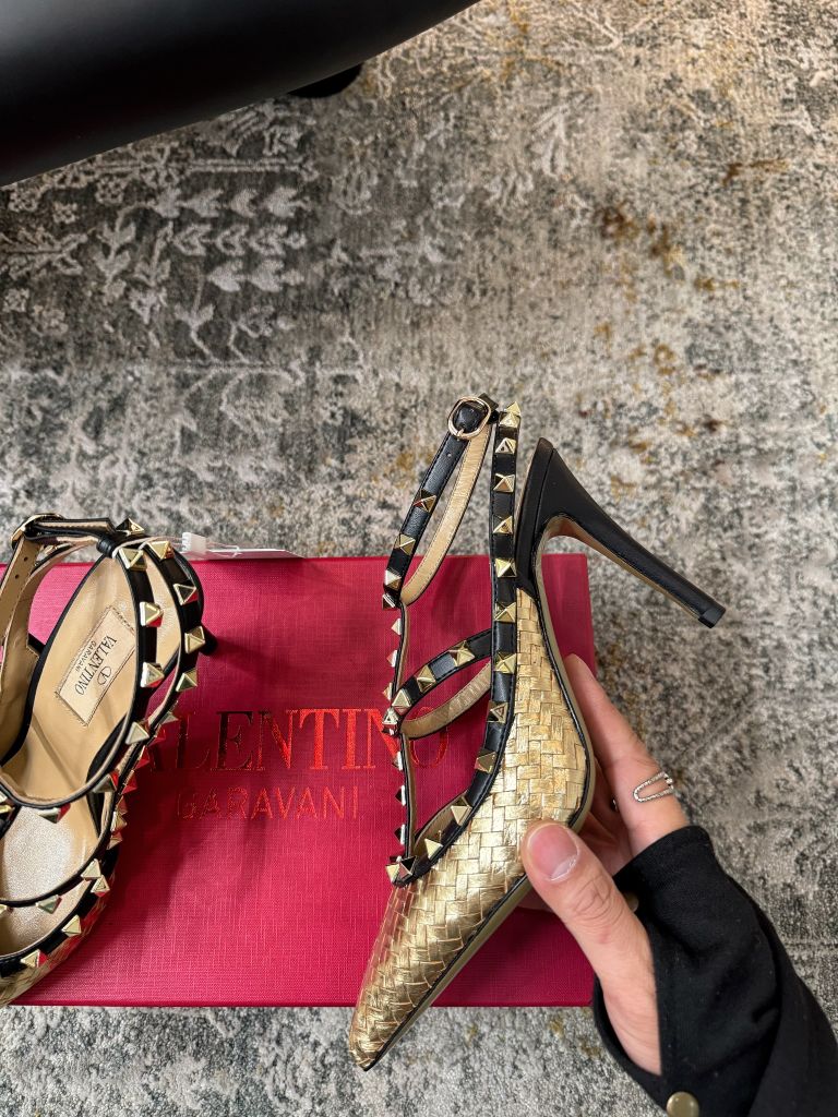 GIÀY CAO GÓT NỮ VLTN MŨI NHỌN ĐAN DÂY ĐÍNH ĐINH 9.5CM SIÊU TÔN DÁNG 1900K (HÀNG ORDER QUỐC TẾ)*