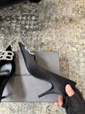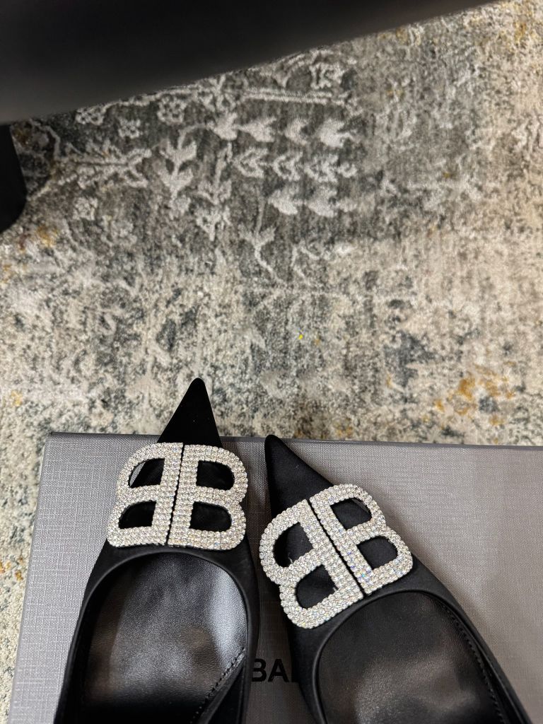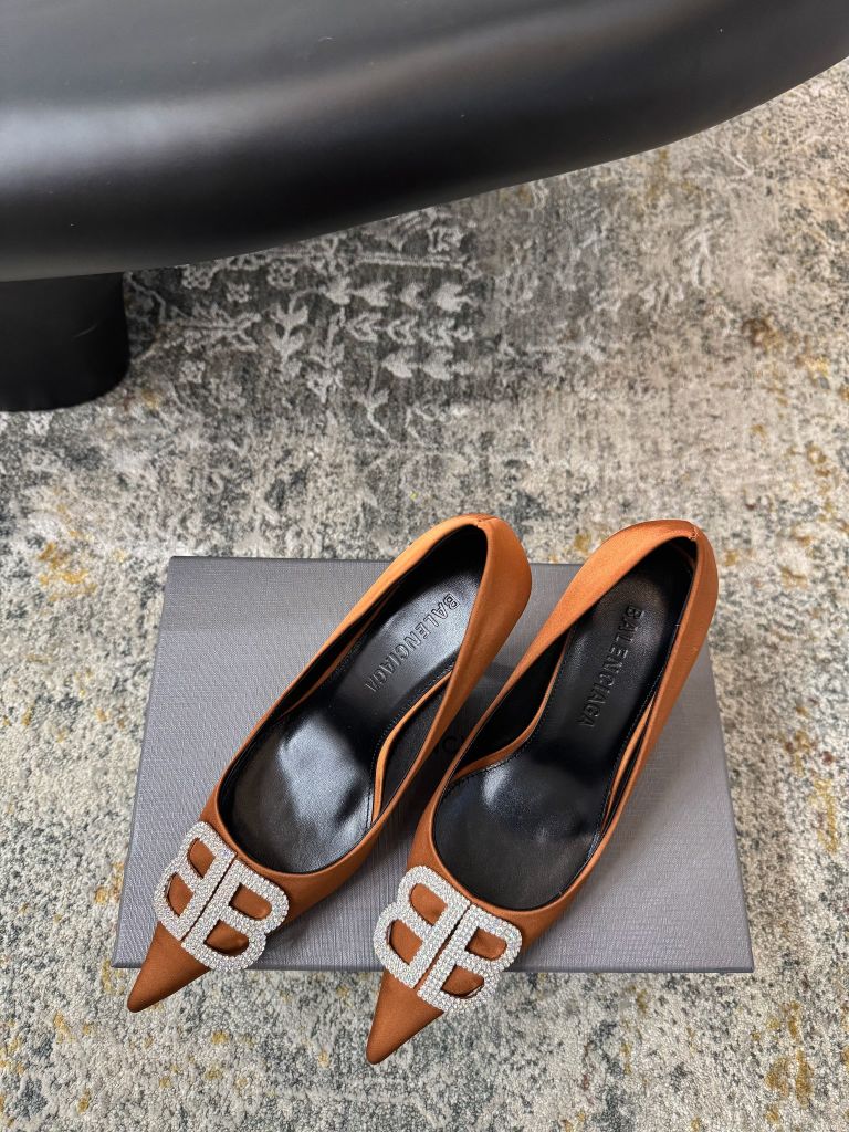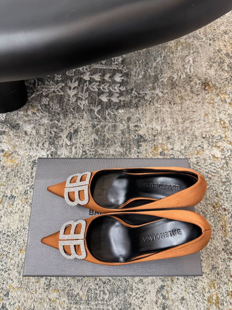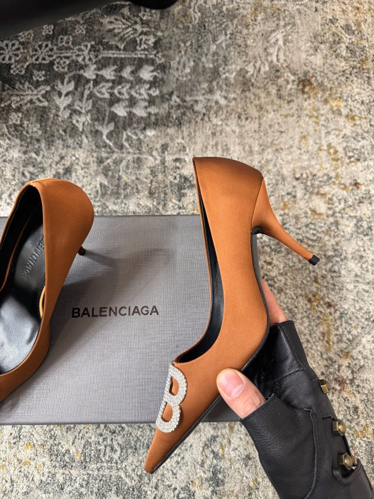 GIÀY CAO GÓT NỮ BAL* MŨI NHỌN LỤA NÂU LOGO B NỔI THANH LỊCH 1750k (HÀNG ORDER QUỐC TẾ)
