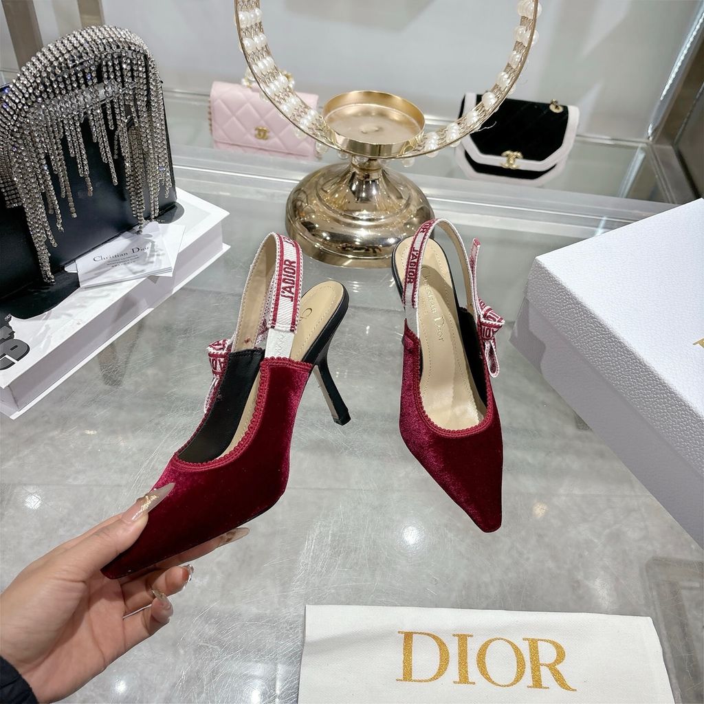 GIÀY CAO GÓT NỮ DR MŨI NHỌN SLINGBACK RUY BĂNG SIGNATURE – NHUNG MỊN SANG 1650k (HÀNG ORDER QUỐC TẾ)