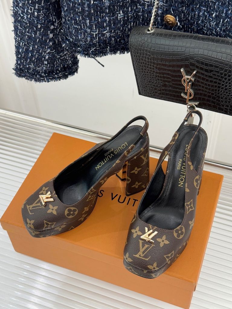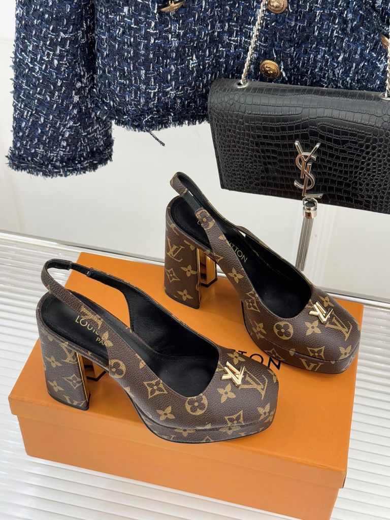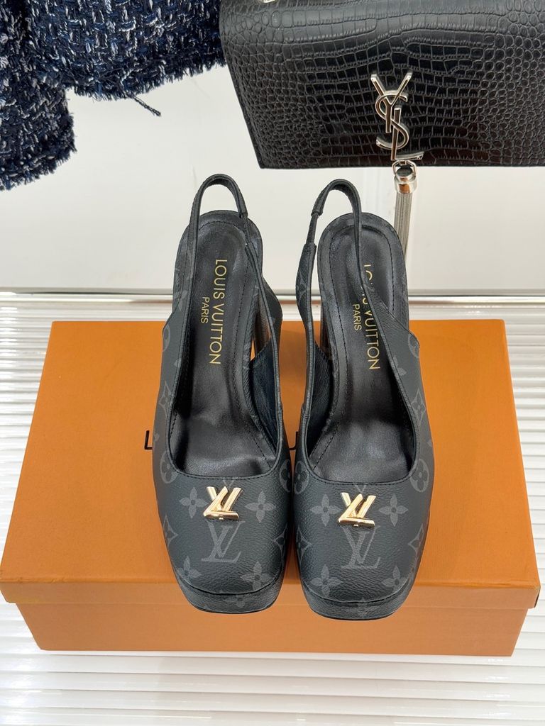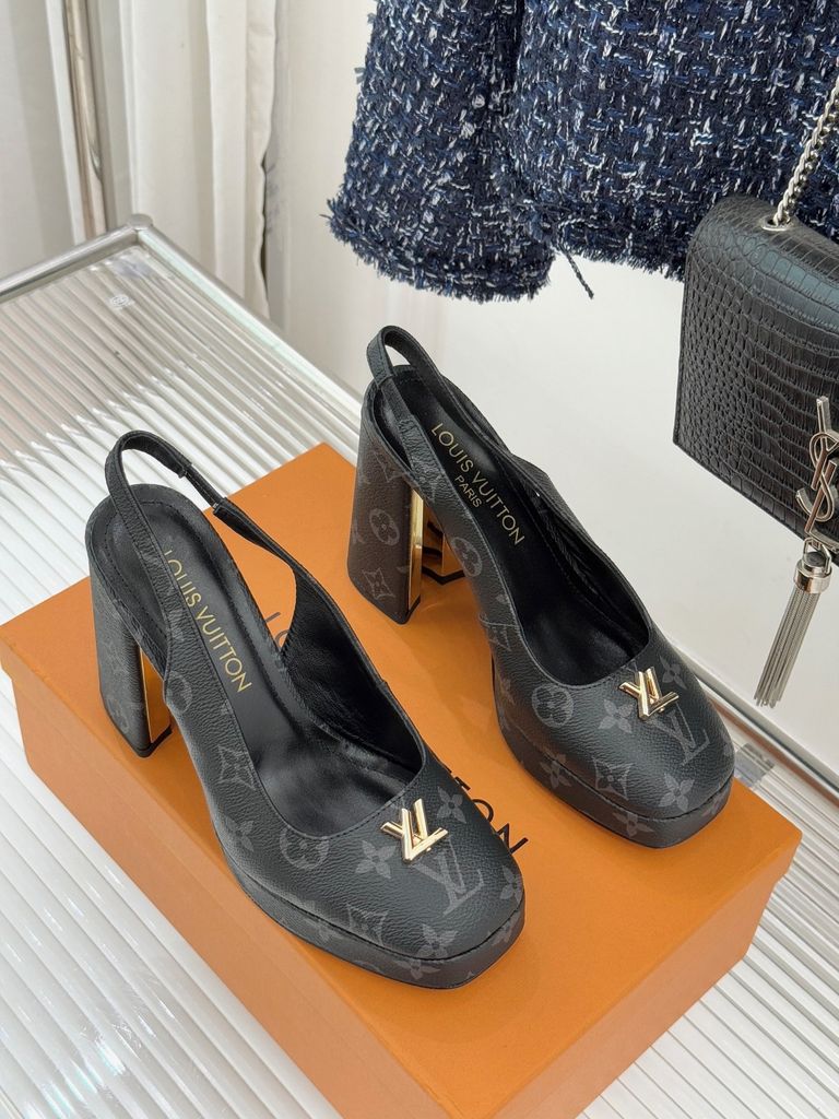 GIÀY CAO GÓT NỮ L V MONOGRAM CỔ ĐIỂN – LOGO V KIM LOẠI – GÓT 11CM, ĐẾ 2CM 1900k (HÀNG ORDER QUỐC TẾ)