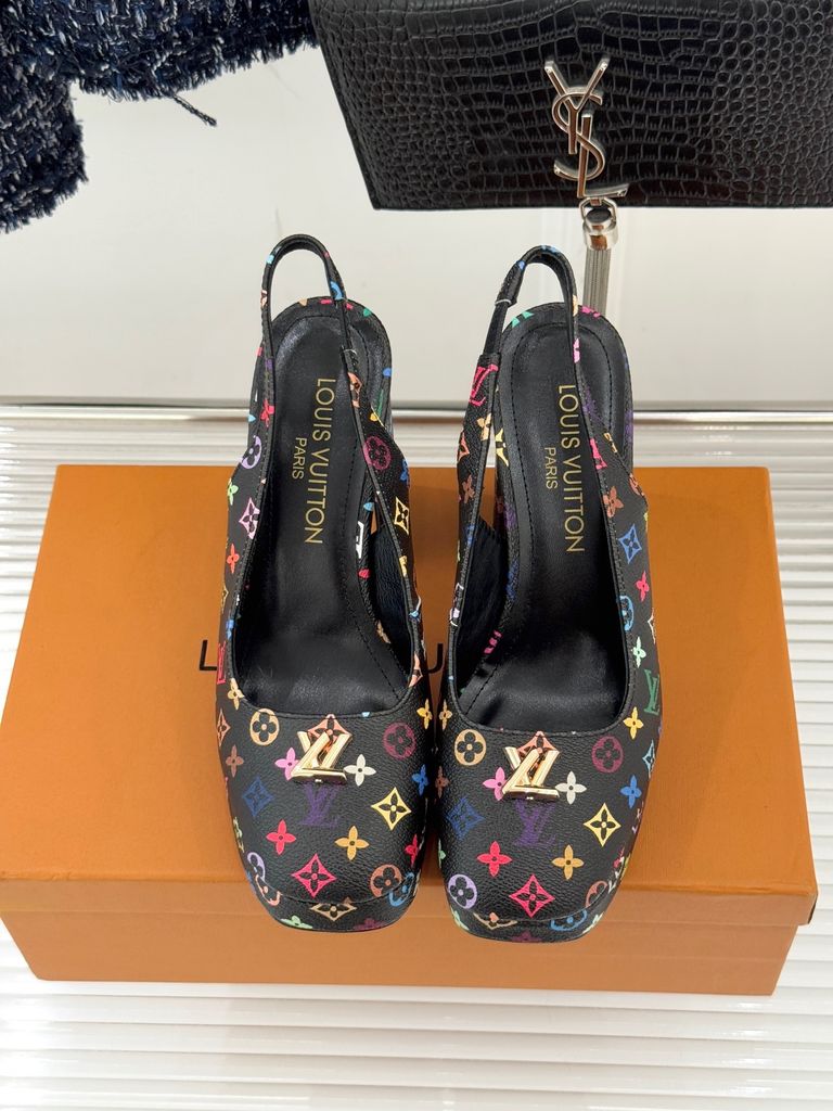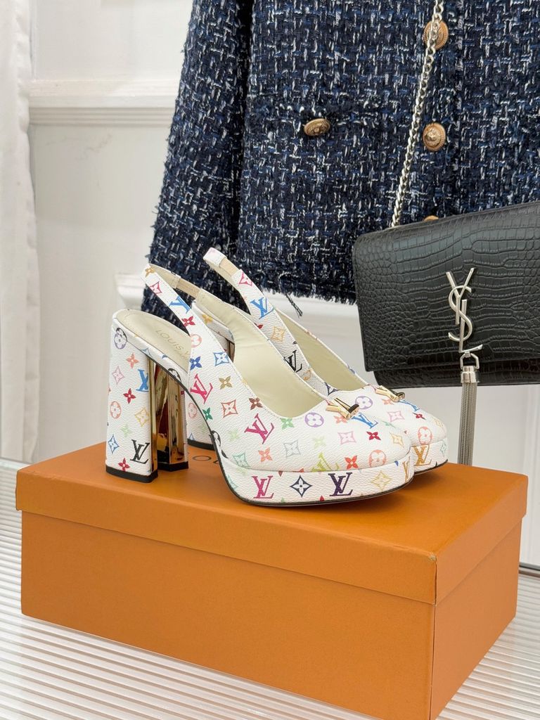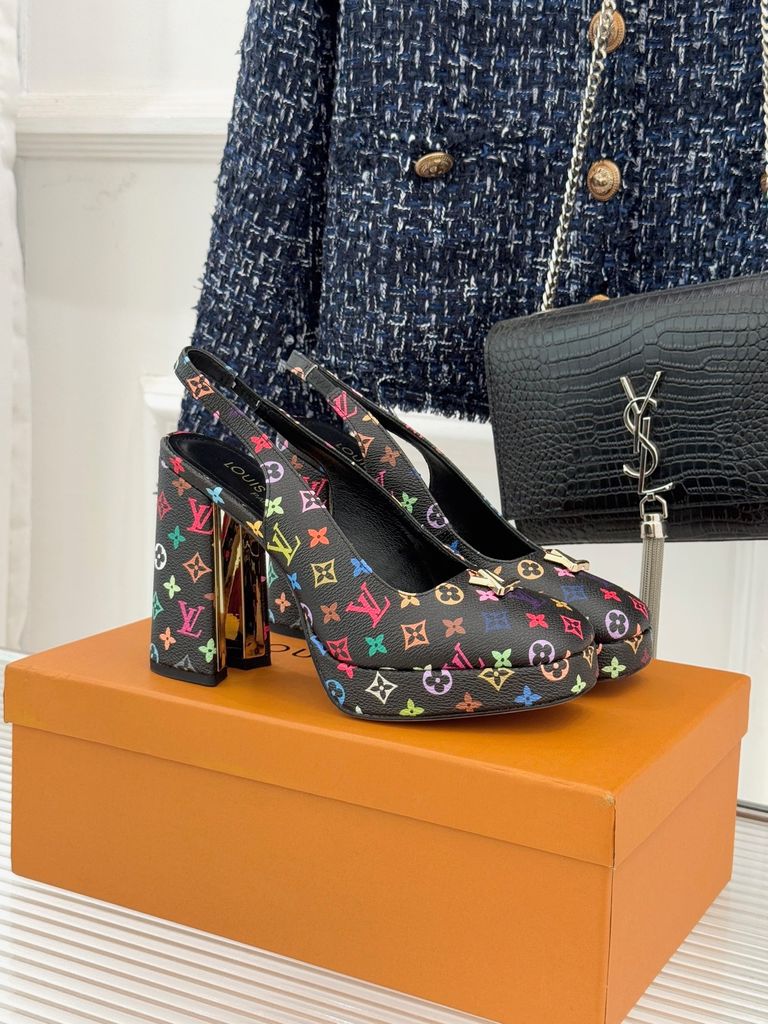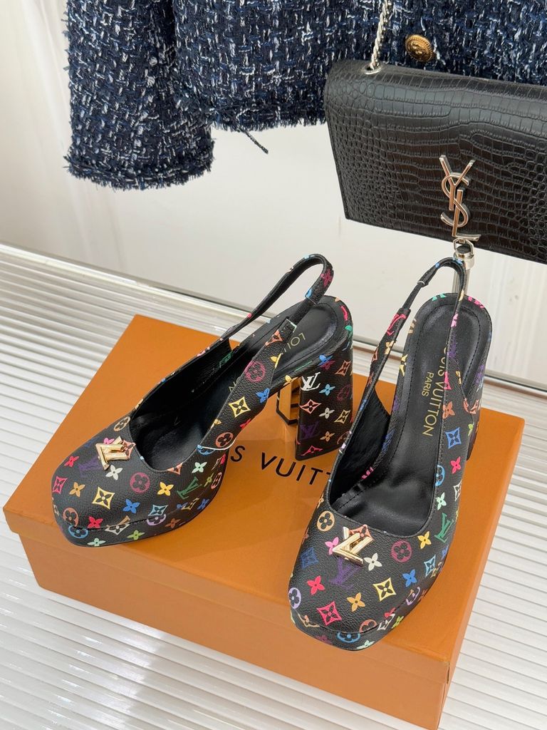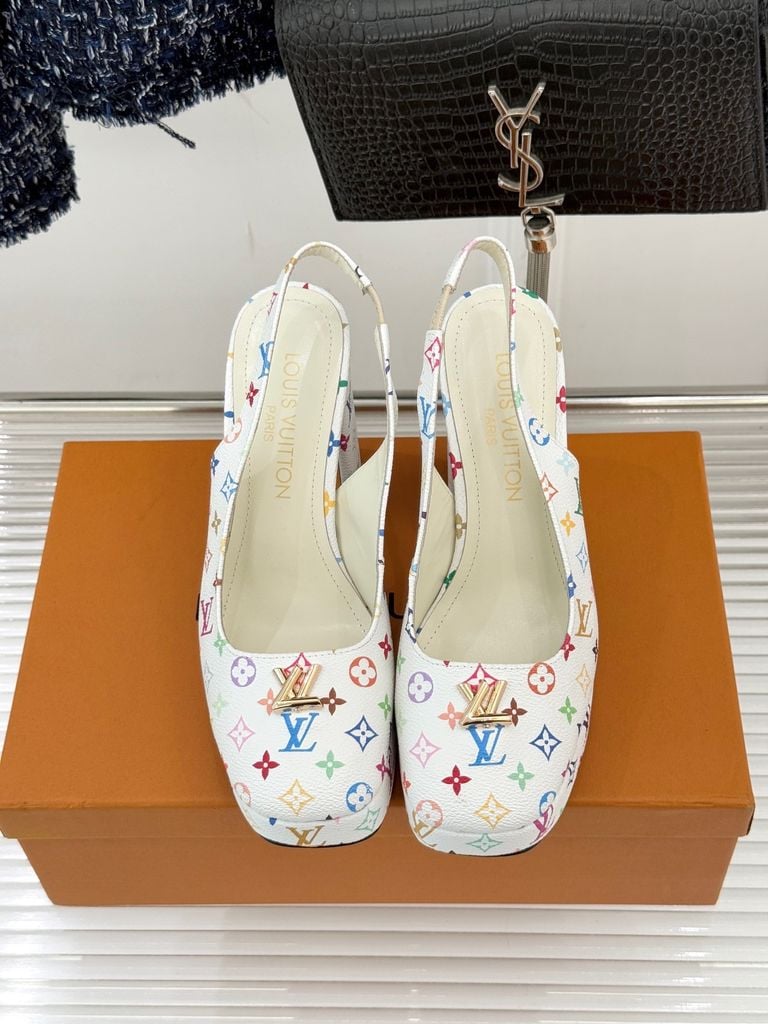GIÀY CAO GÓT NỮ L V MONOGRAM CỔ ĐIỂN – LOGO V KIM LOẠI – GÓT 11CM, ĐẾ 2CM 1900k (HÀNG ORDER QUỐC TẾ)