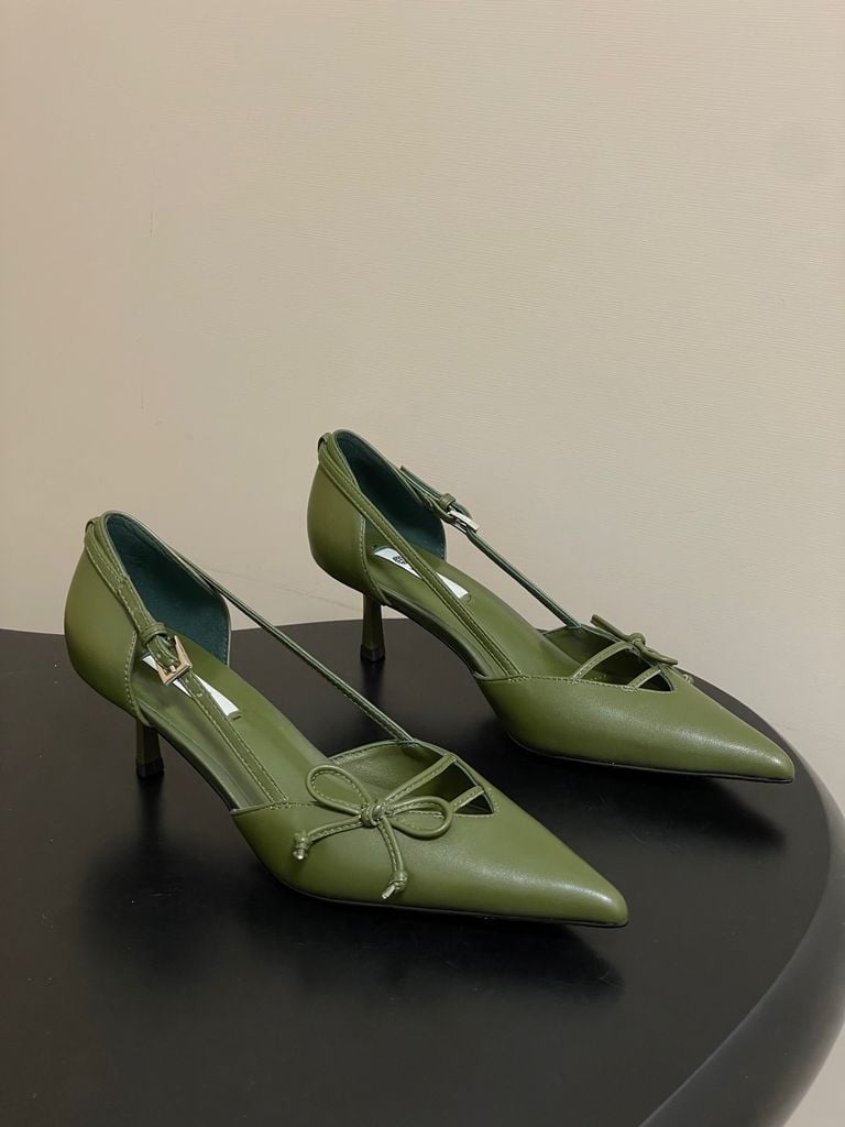 Một đôi cao gót mang đúng tinh thần “tối giản mà đắt giá” – chỉ cần một chi tiết nơ nhỏ và phom mũi nhọn sắc sảo là đủ nâng toàn bộ diện mạo lên level sang.