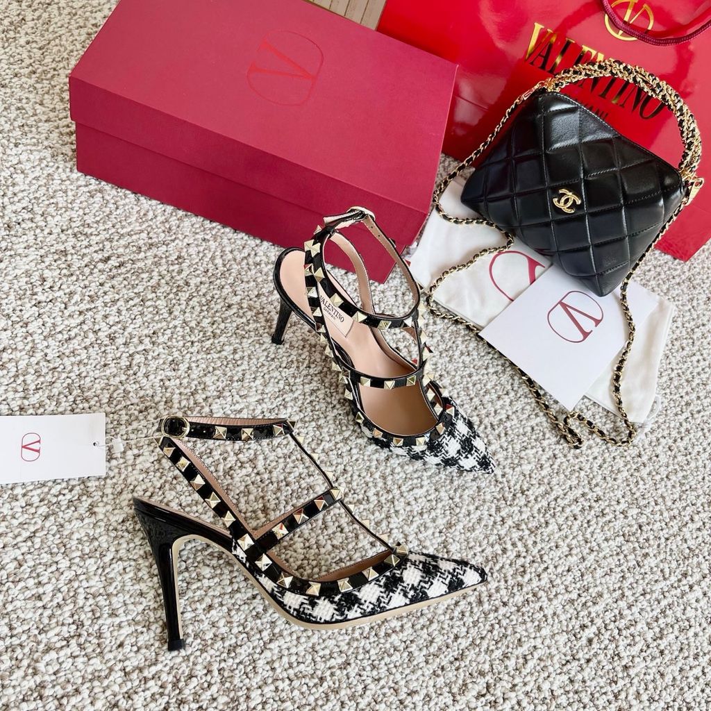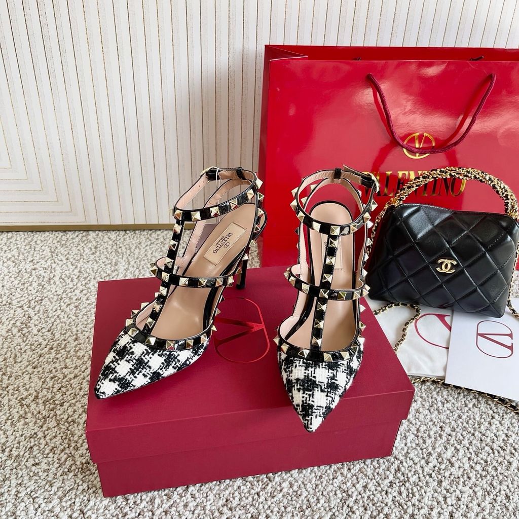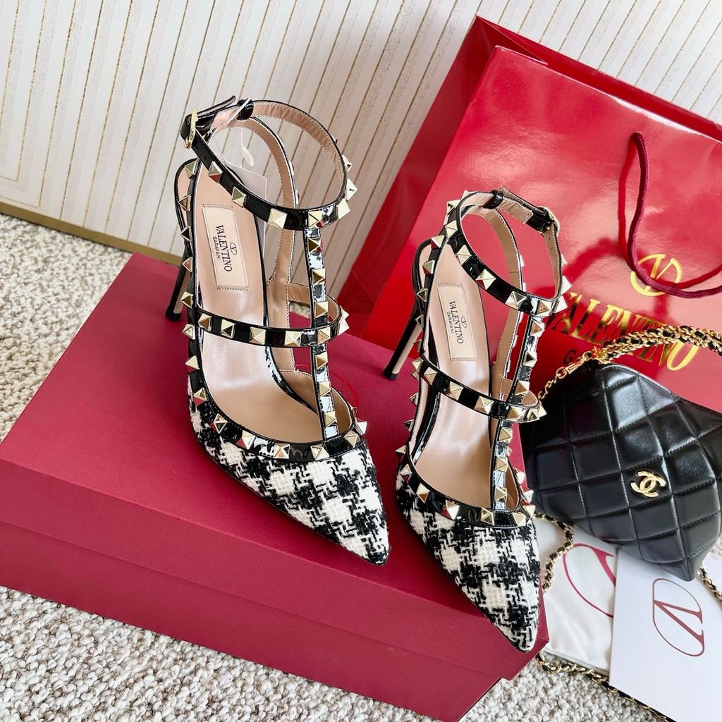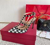 GIÀY CAO GÓT NỮ VALENTINOO* * T-STRAP ĐINH TÁN HOUNDSTOOTH 6.5CM / 10CM 1700k