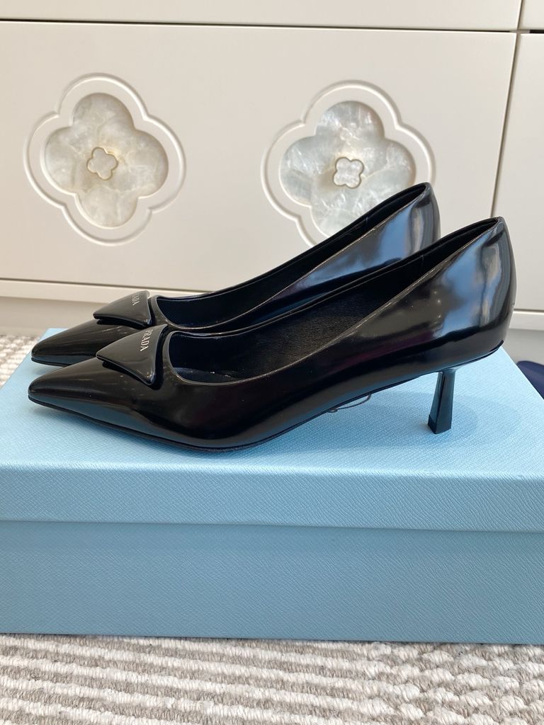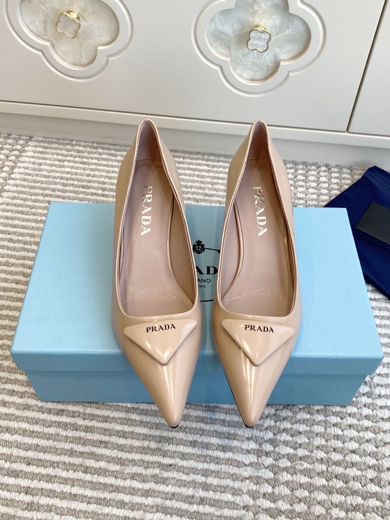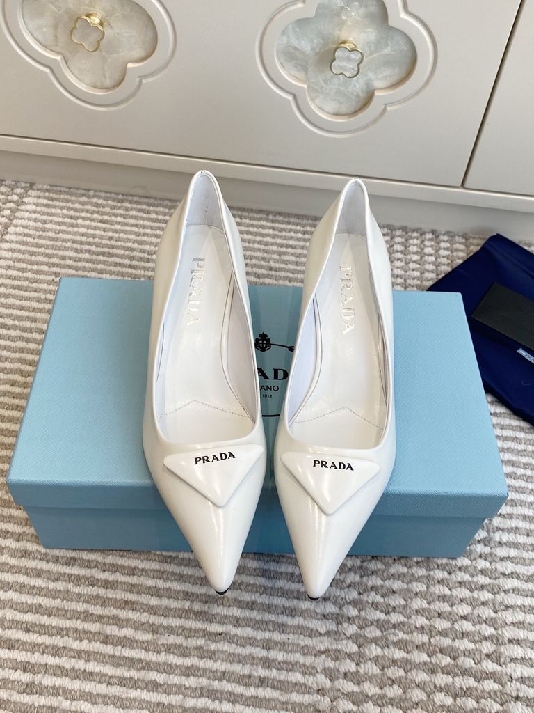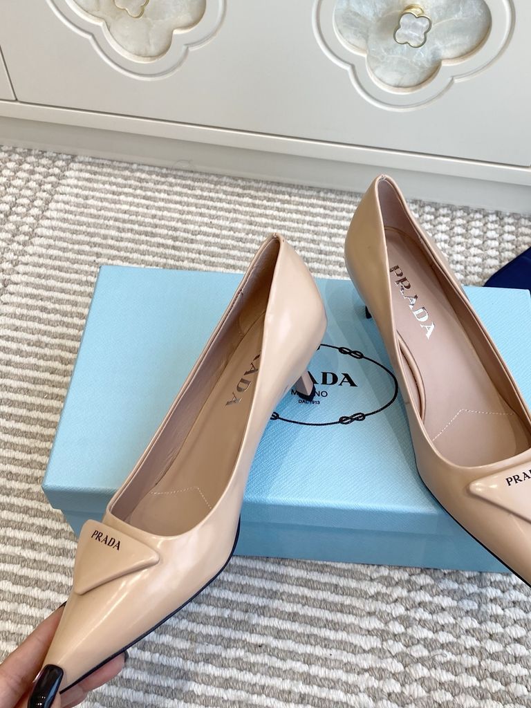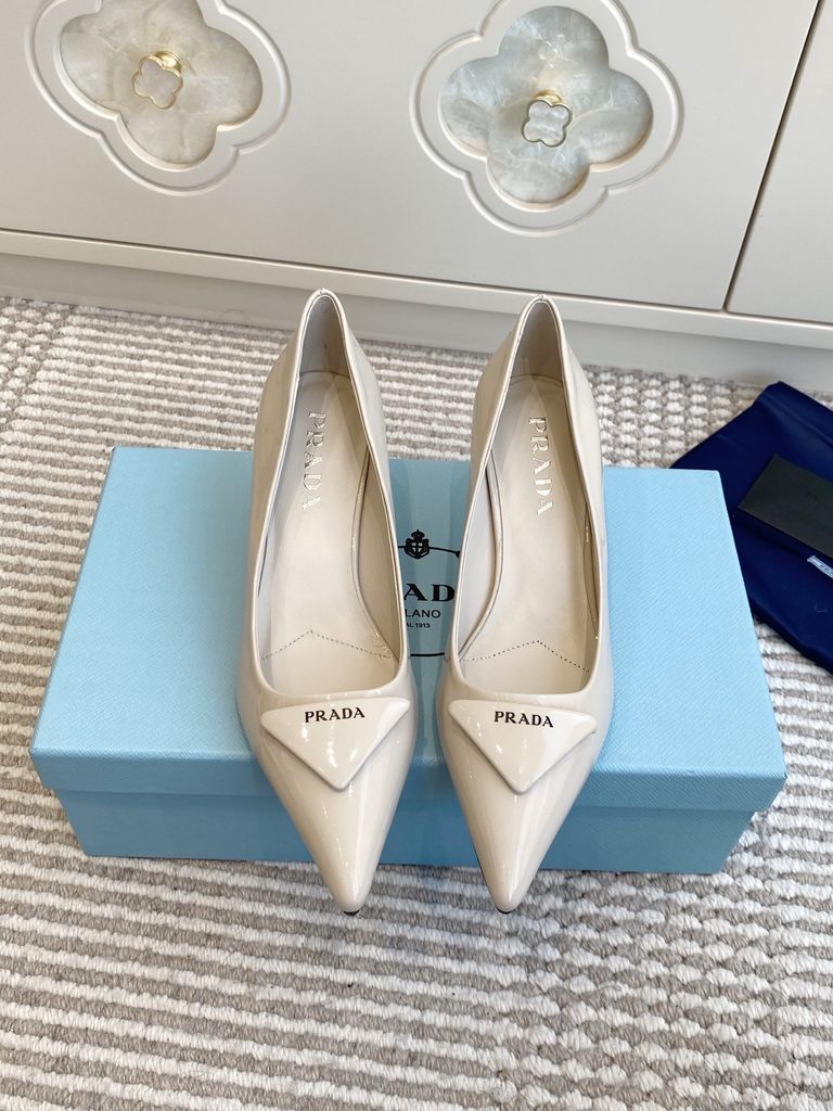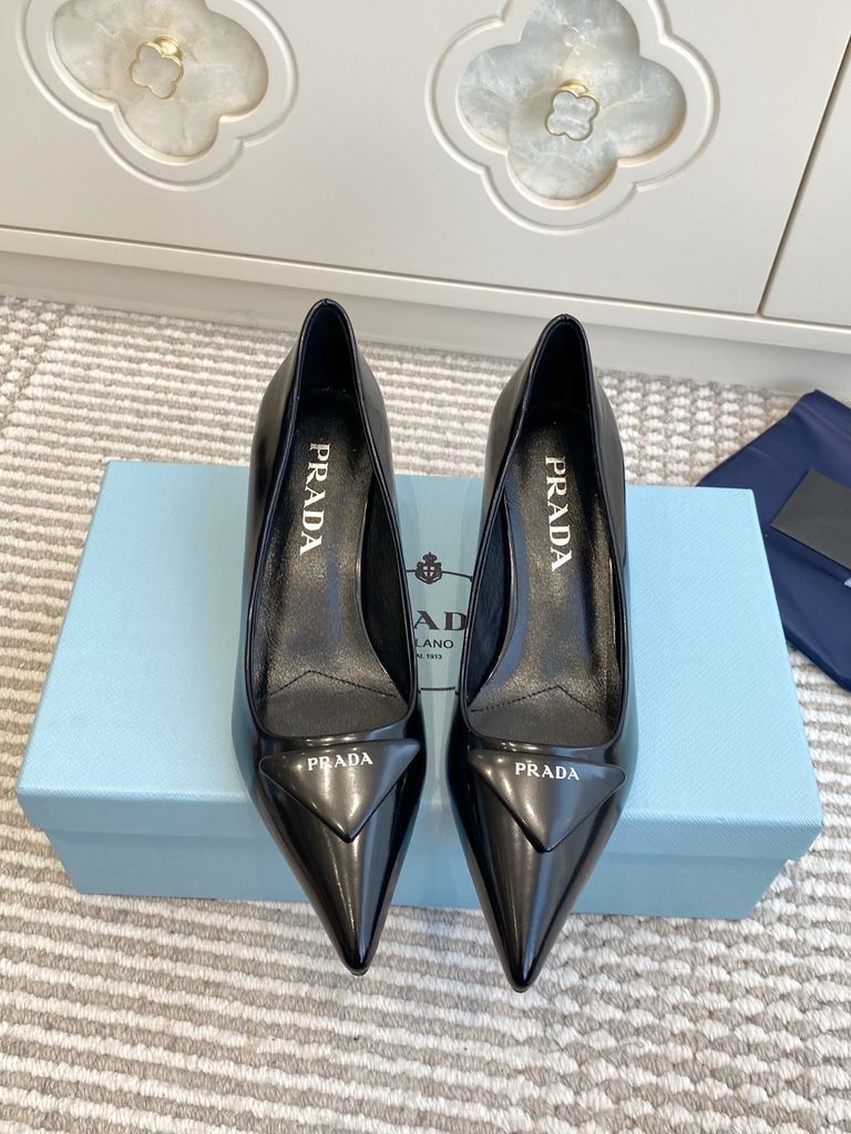 GIÀY CAO GÓT NỮ PRD MŨI NHỌN LOGO TAM GIÁC – ĐƯỜNG NÉT TỐI GIẢN SẮC SẢO, TÔN DÁNG THANH THOÁT 1750K (HÀNG ORDER QUỐC TẾ)