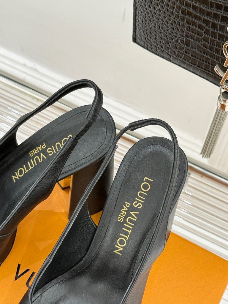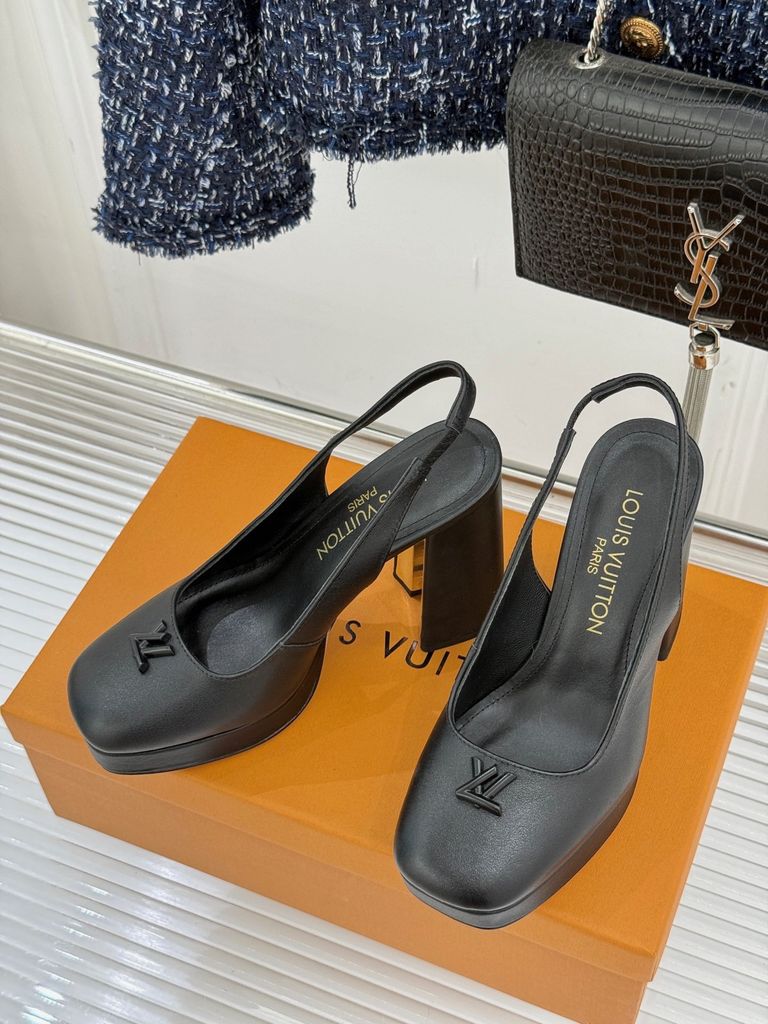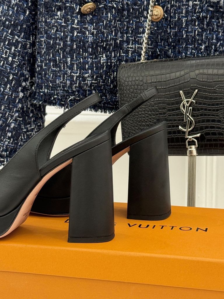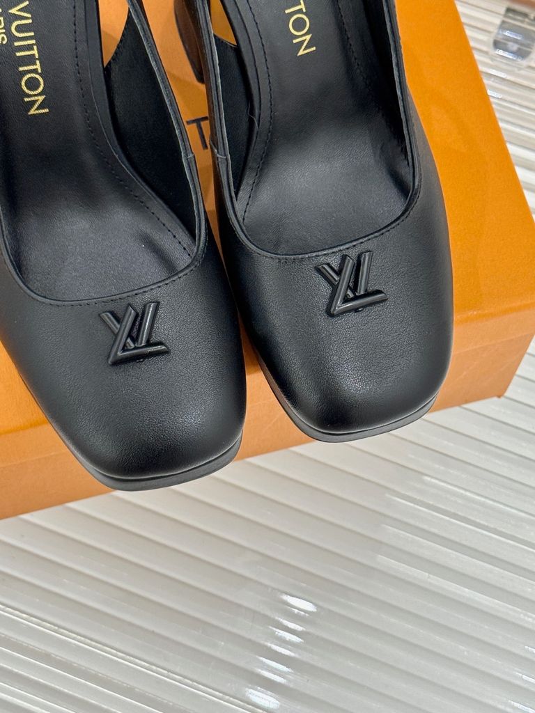 GIÀY L*V CAO GÓT HỞ GÓT, GÓT TRỤ LOGO KIM LOẠI DA BÓNG/DA LÌ 1900k (HÀNG ORDER QUỐC TẾ)