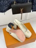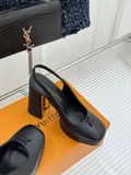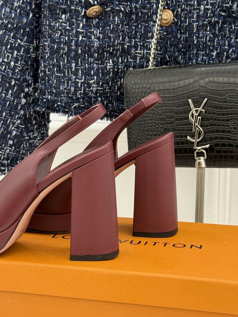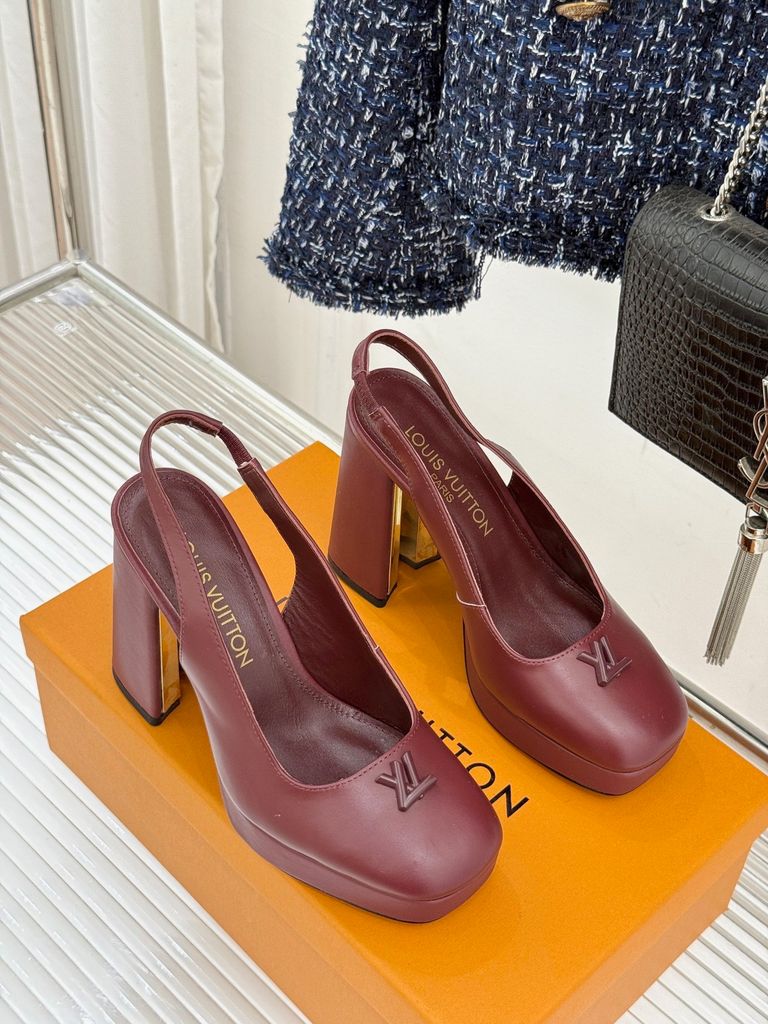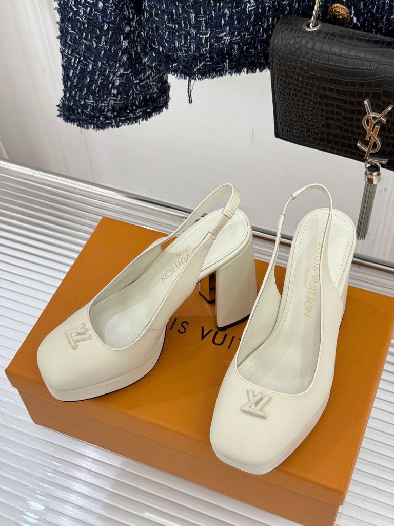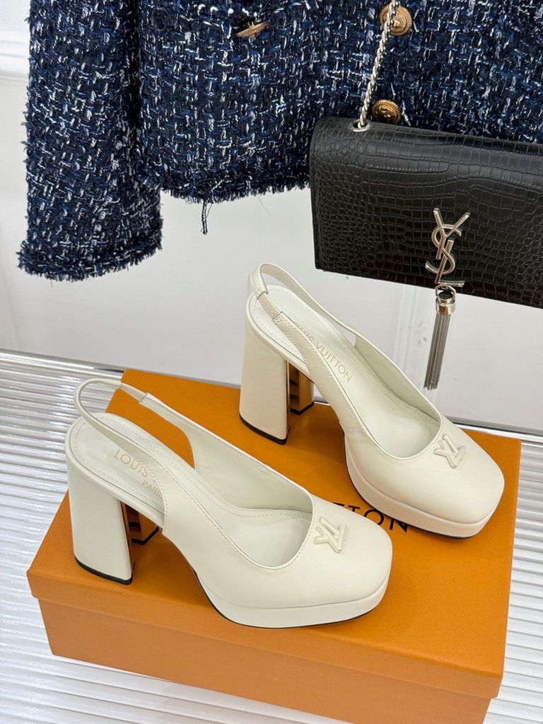 GIÀY L*V CAO GÓT HỞ GÓT, GÓT TRỤ LOGO KIM LOẠI DA BÓNG/DA LÌ 1900k (HÀNG ORDER QUỐC TẾ)