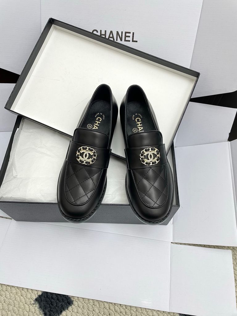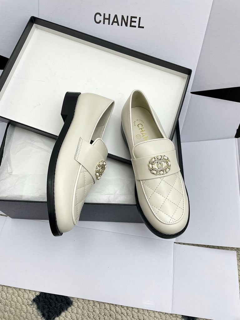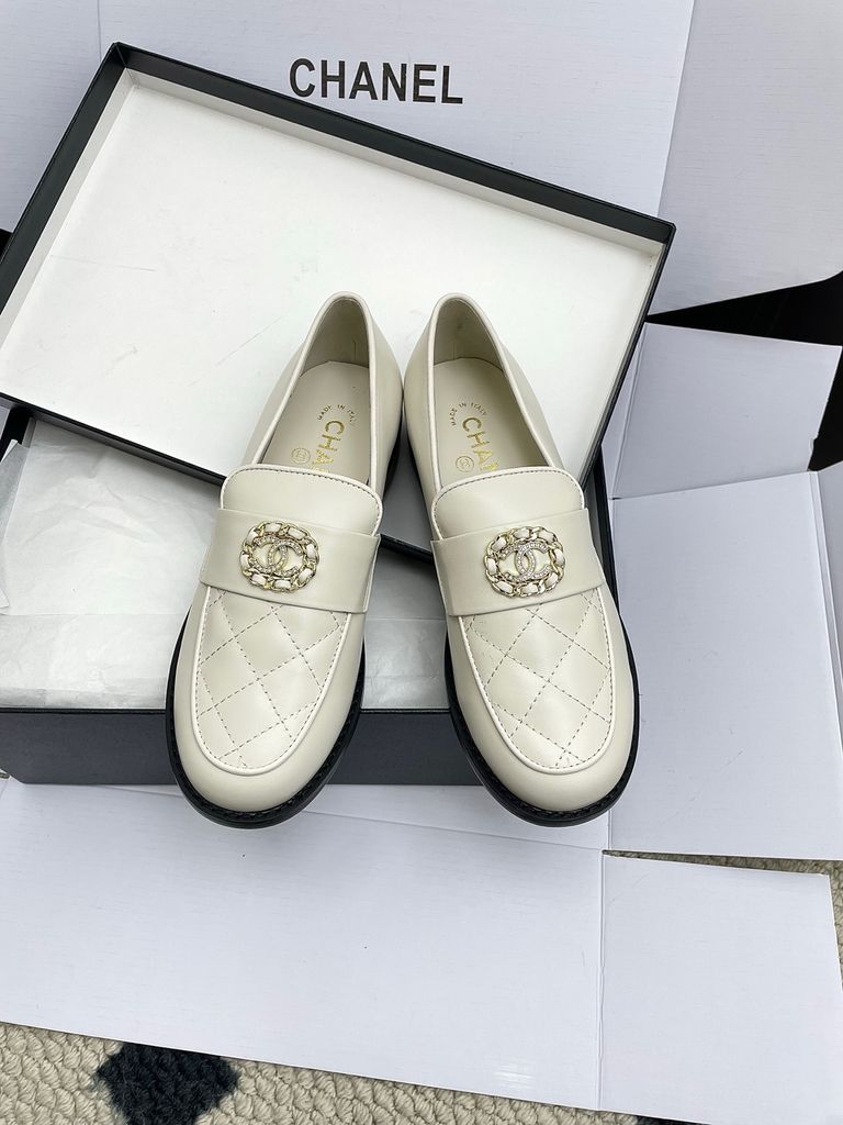 GIÀY NỮ LOAFER CHAN* – IVORY QUILT, HUY HIỆU NGỌC TRAI 2000k (HÀNG ORDER QUỐC TẾ)