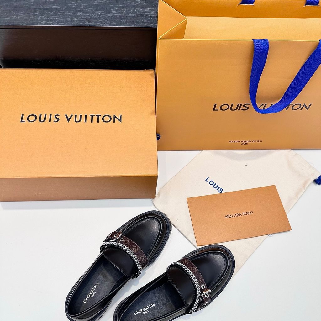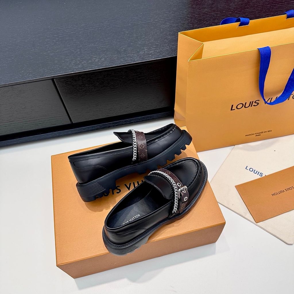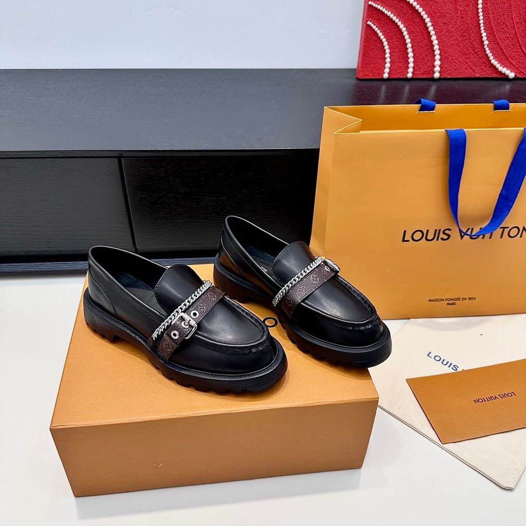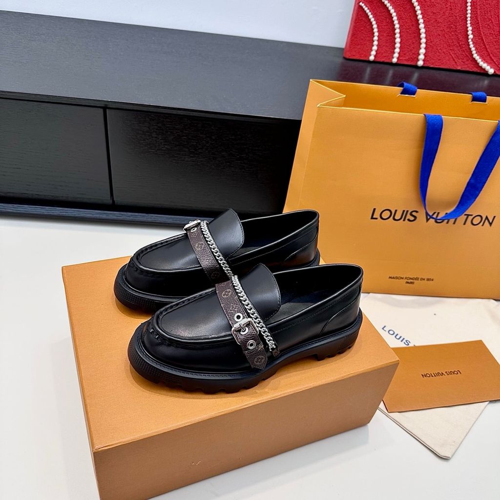 GIÀY LOAFER NỮ L V DÂY TRANG TRÍ KIM LOẠI – ĐẾ DÀY CÁ TÍNH, SANG GỌN 1700k (HÀNG ORDER QUỐC TẾ)