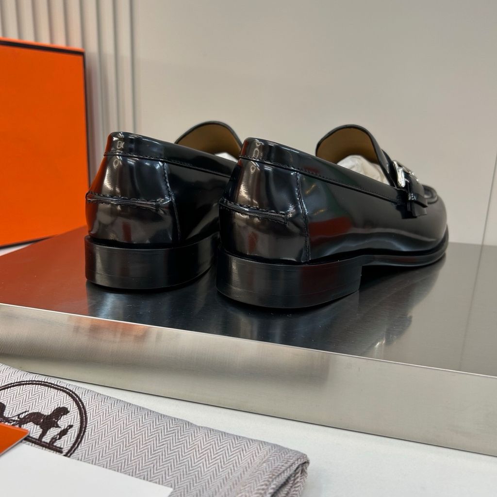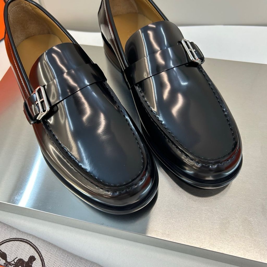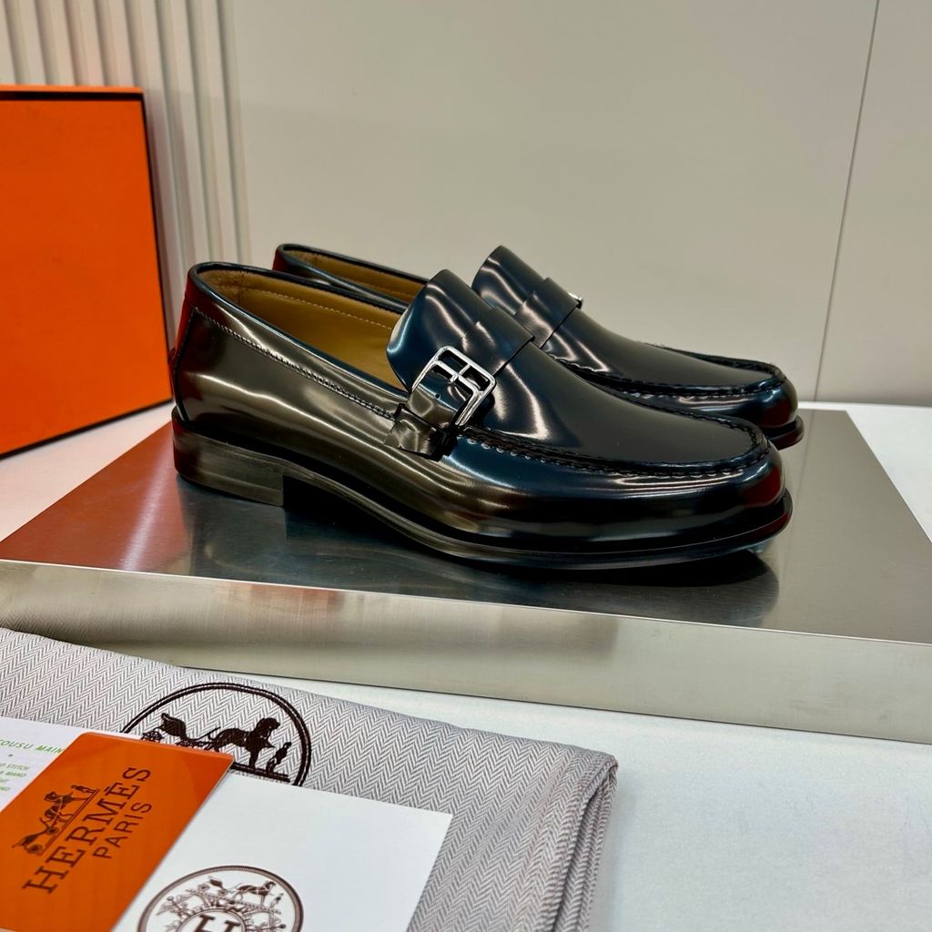 GIÀY NAM LOAFER H M DA BÓNG – KHÓA H BẢN NẸP, FORM LỊCH LÃM, GÓT: 3CM 2500K (HÀNG ORDER QUỐC TẾ)