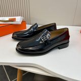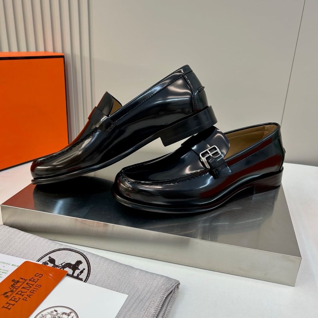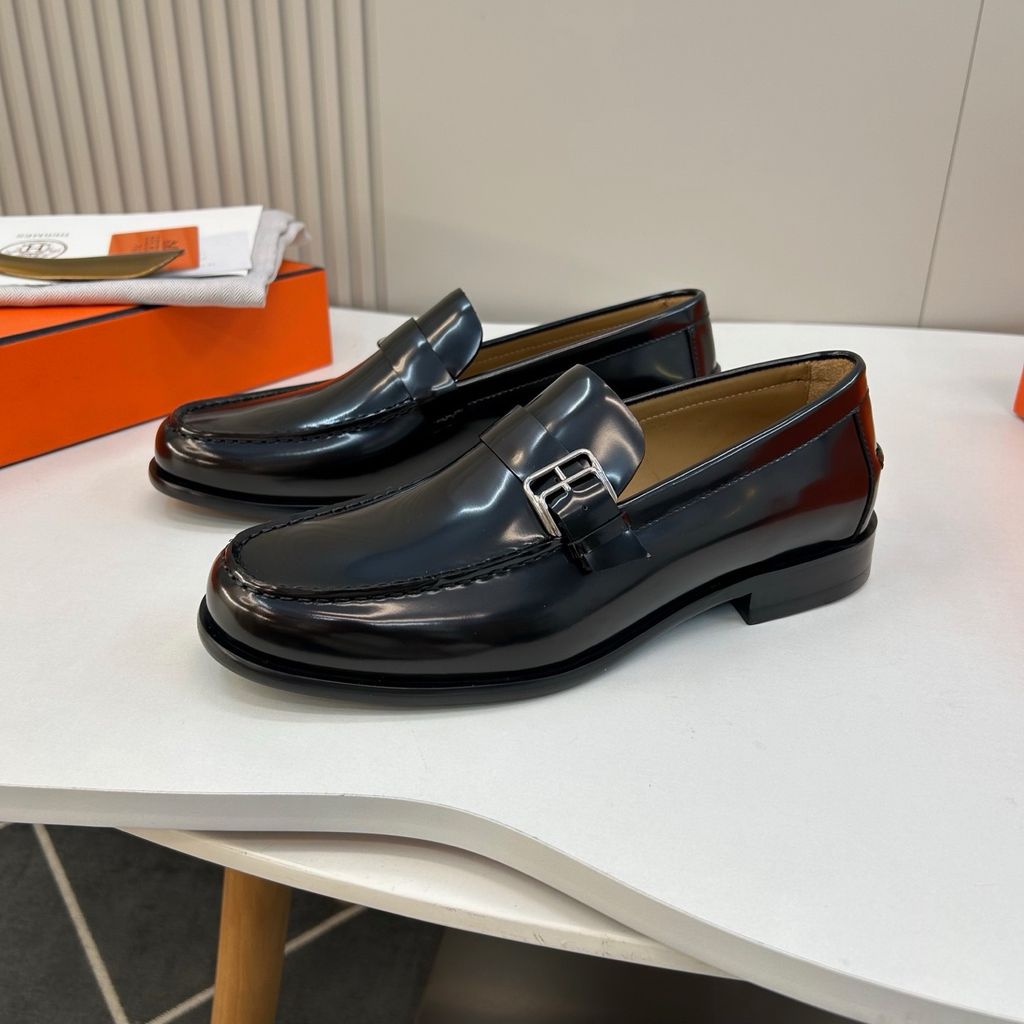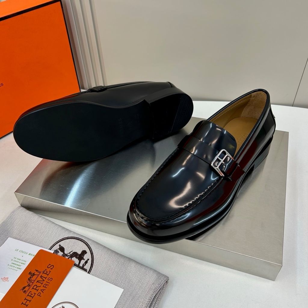GIÀY NAM LOAFER H M DA BÓNG – KHÓA H BẢN NẸP, FORM LỊCH LÃM, GÓT: 3CM 2500K (HÀNG ORDER QUỐC TẾ)