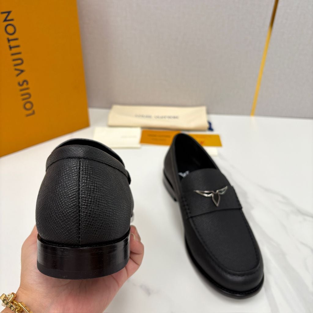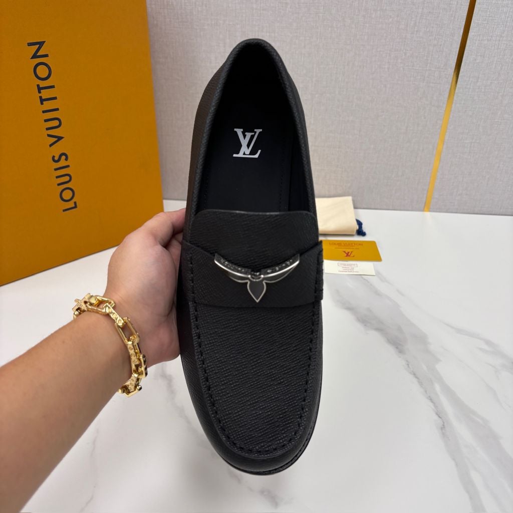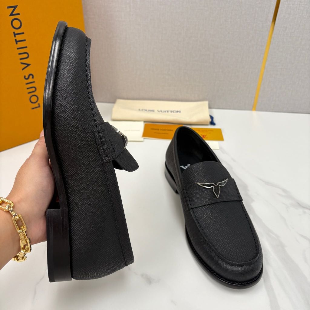 GIÀY NAM LOAFER L V MAJOR DA VÂN HẠT MICROGRAIN, PHOM MOCASSIN GỌN SANG – CHI TIẾT KIM LOẠI BIỂU TƯỢNG 2950K (HÀNG ORDER QUỐC TẾ)