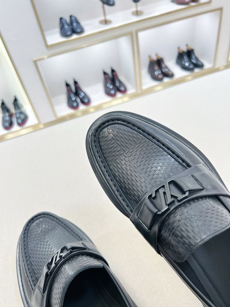 GIÀY NAM LOAFER L V DA VÂN NỔI SIGNATURE, ĐAI TRANG TRÍ CHỮ CÁI NỔI BẬT, ĐẾ LUGSOLE PRIVATE MOLD SANG GỌN 2850k (HÀNG ORDER QUỐC TẾ)