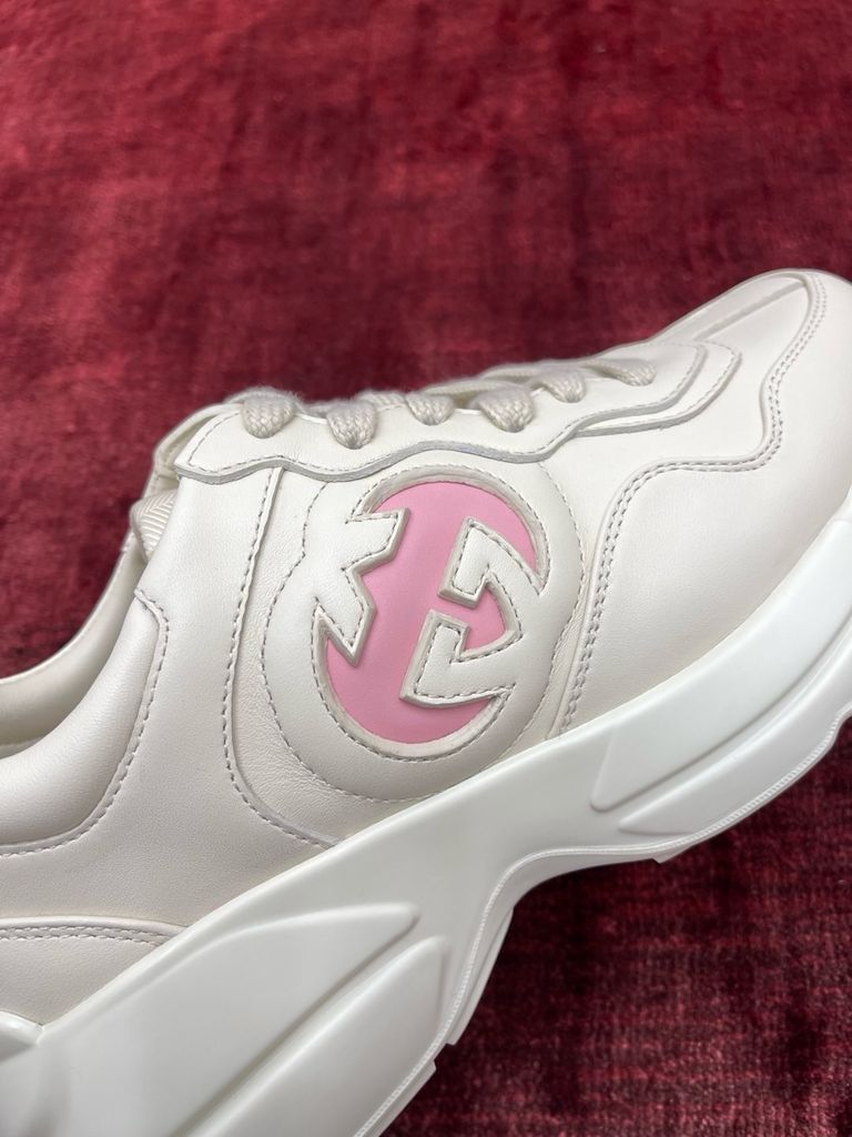 • Logo “GG” xanh nổi bật ở thân giày, tạo điểm nhấn đẳng cấp trên nền kem ngà