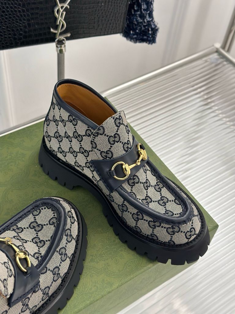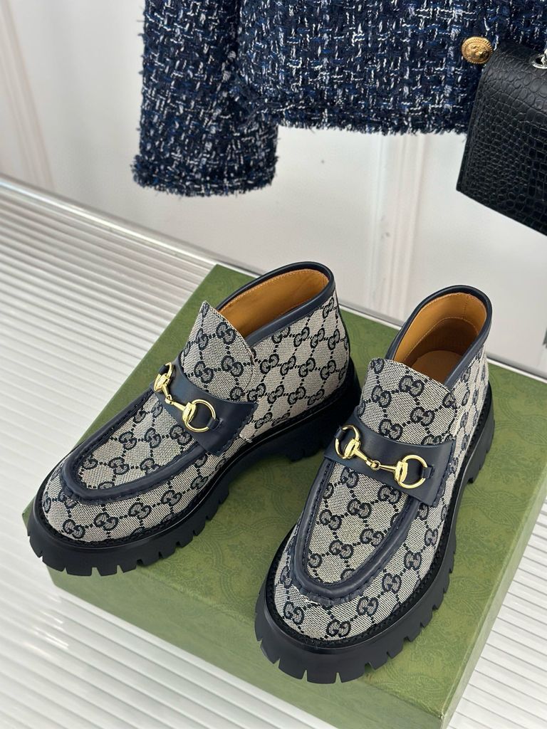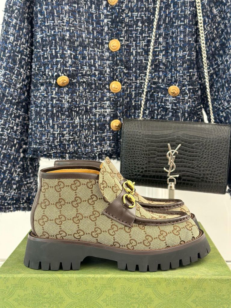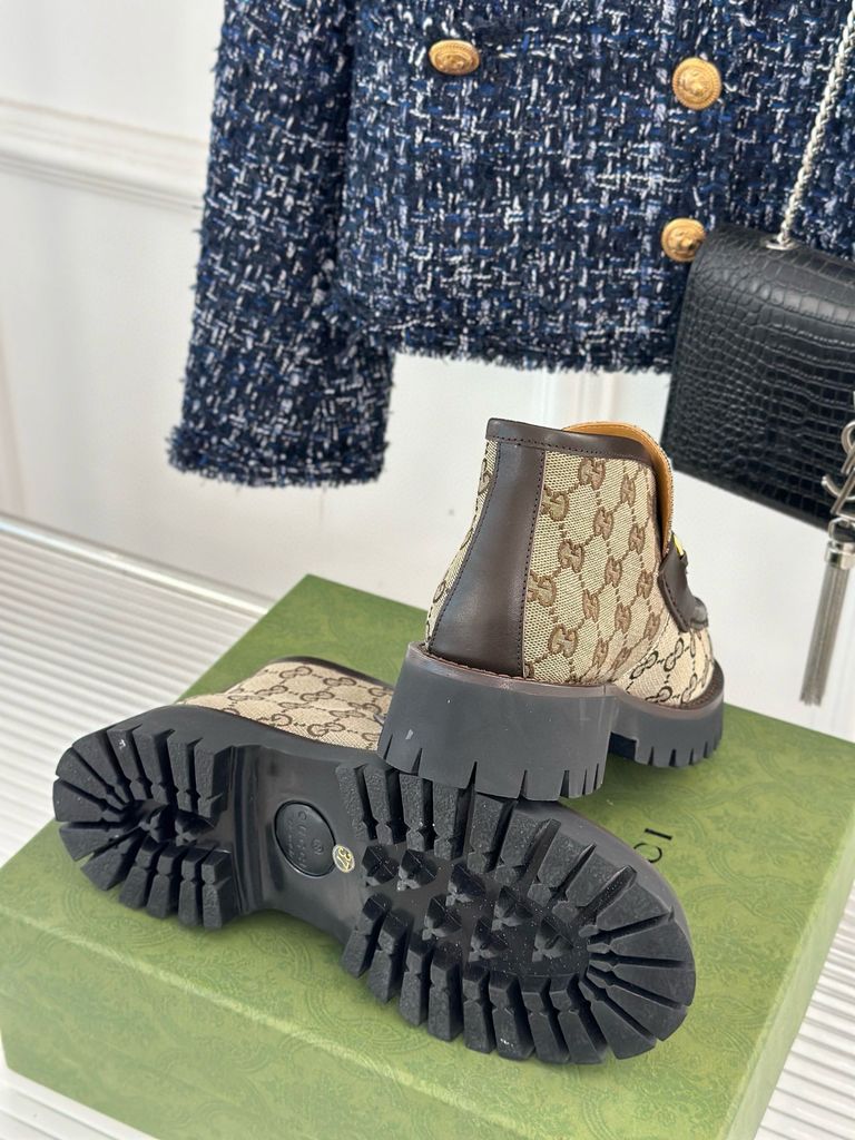 Giày nữ cao cổ GUCCI* đế 4,5cm hoạ tiết logo canvas viền da bò kiểu đẹp cao cấp 2150k