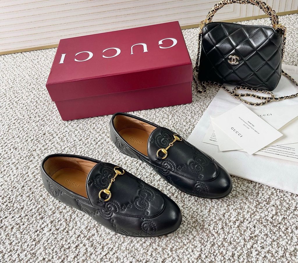 GIÀY NỮ GUCC* LOAFER HORSEBIT – DA BÊ DẬP MONOGRAM, ĐẾ DA THẬT 1800k