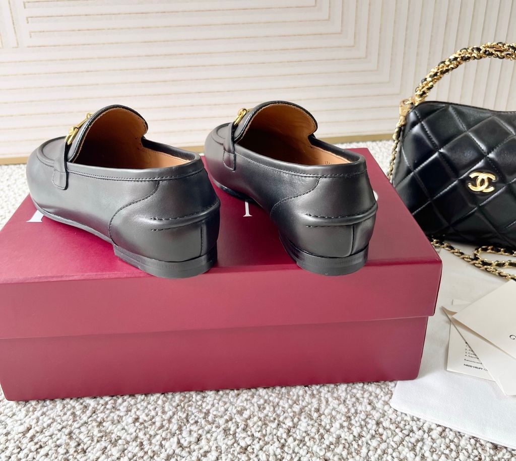 • Phom loafer gọn thanh, mũi bo mềm mại; chi tiết horsebit kim loại ánh vàng tạo điểm nhấn tinh tế.