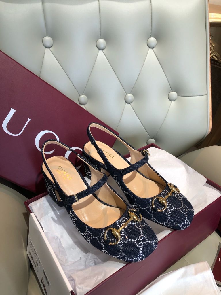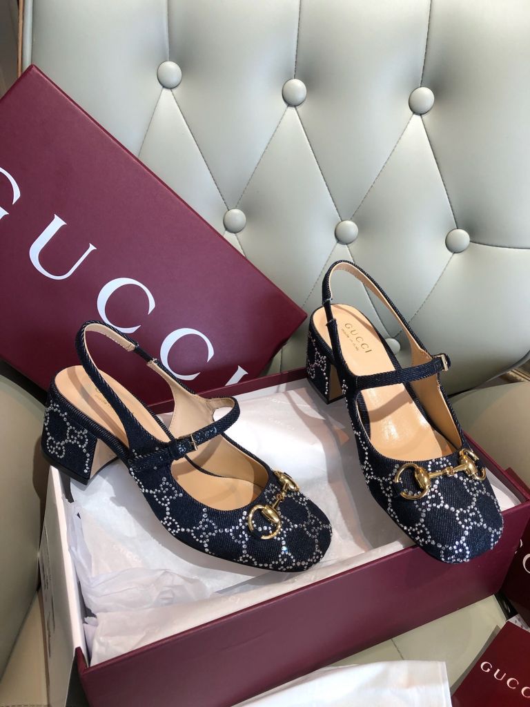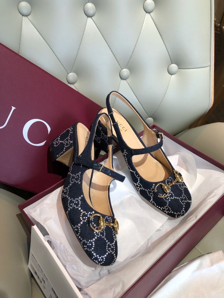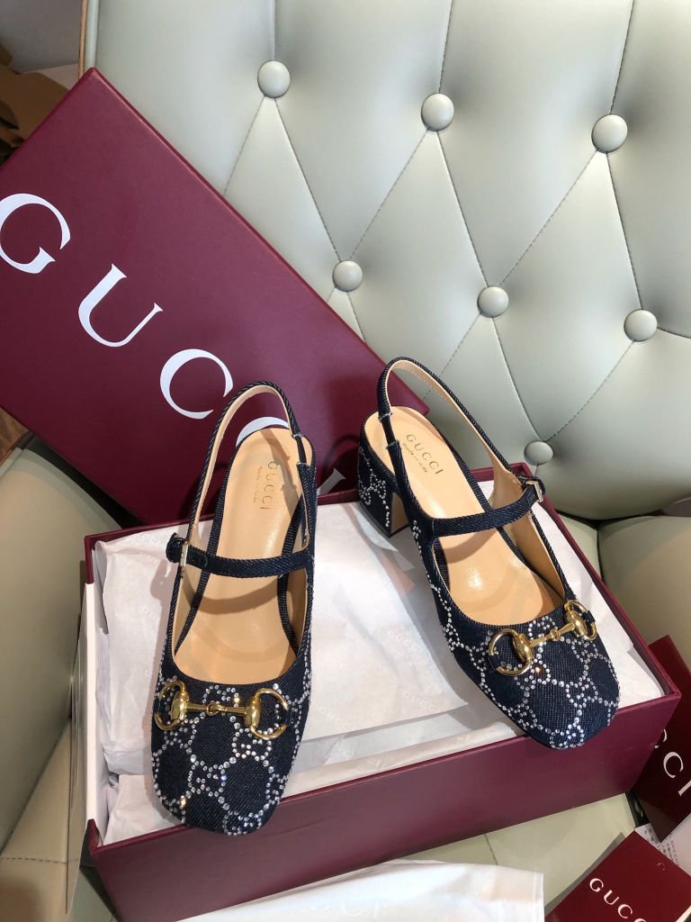 GIÀY NỮ GUCC* MARY JANE SLINGBACK GG CRYSTAL DENIM – HORSEBIT GÓT 5.5 CM 1750k (HÀNG ORDER QUỐC TẾ)