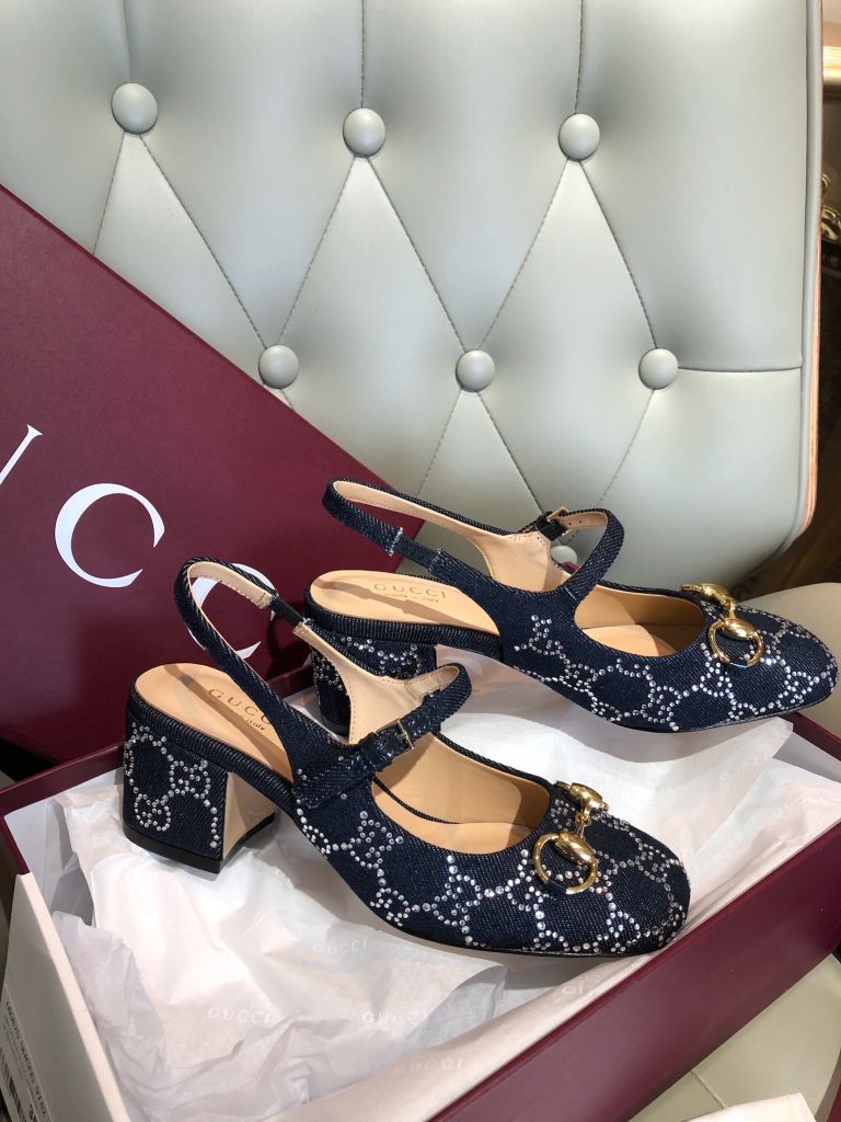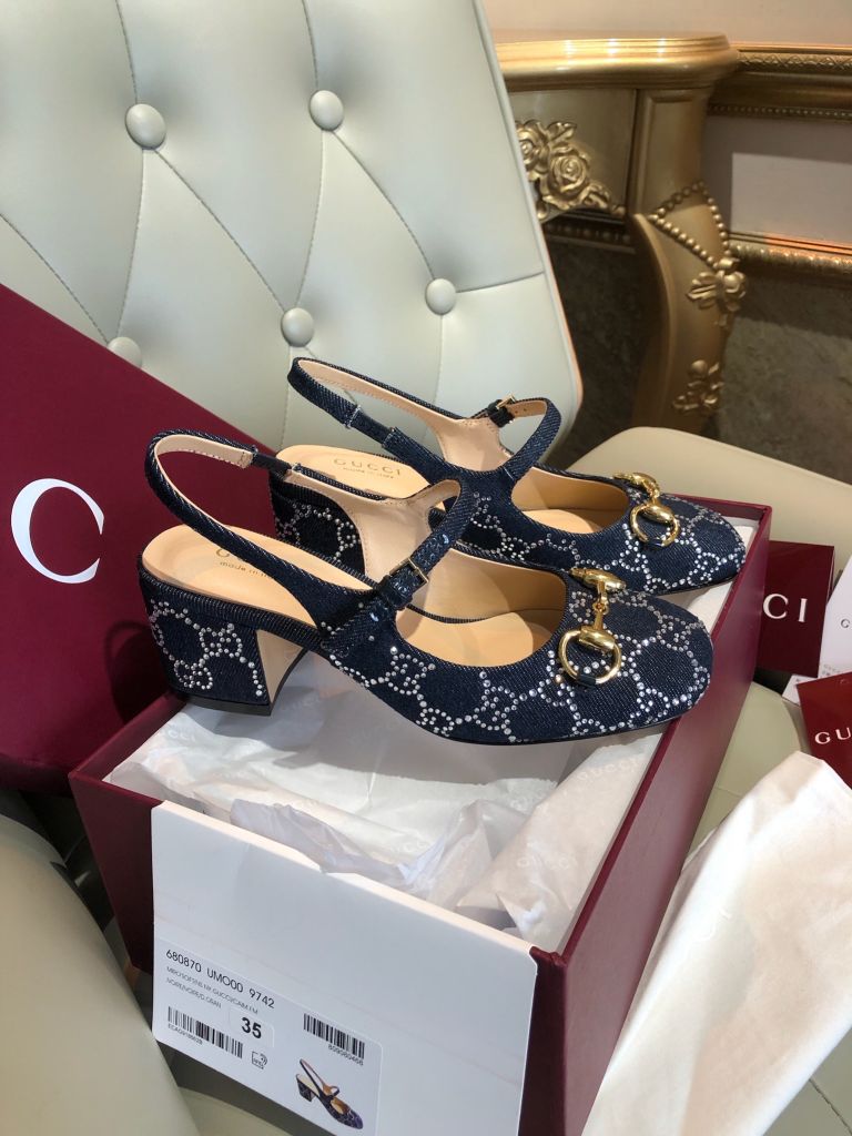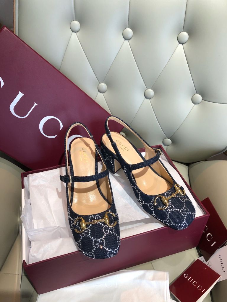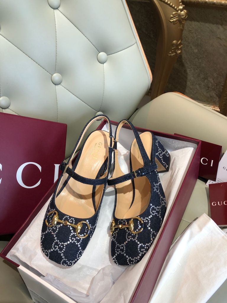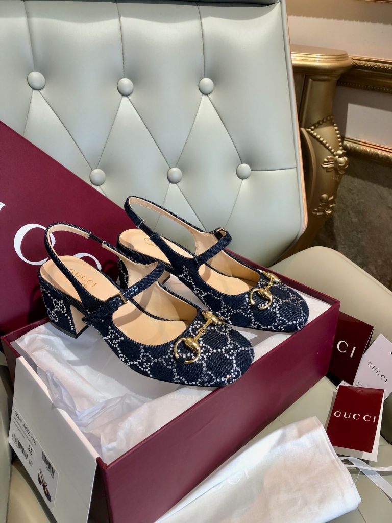 GIÀY NỮ GUCC* MARY JANE SLINGBACK GG CRYSTAL DENIM – HORSEBIT GÓT 5.5 CM 1750k (HÀNG ORDER QUỐC TẾ)