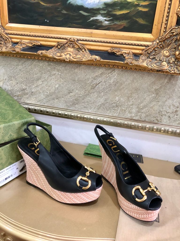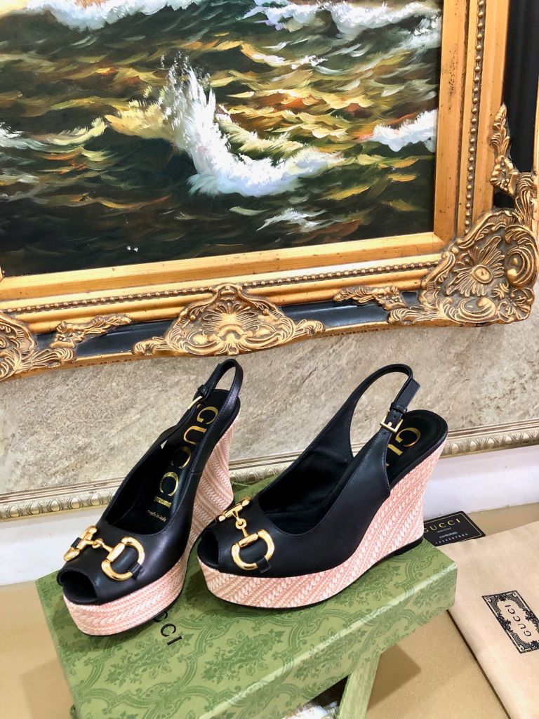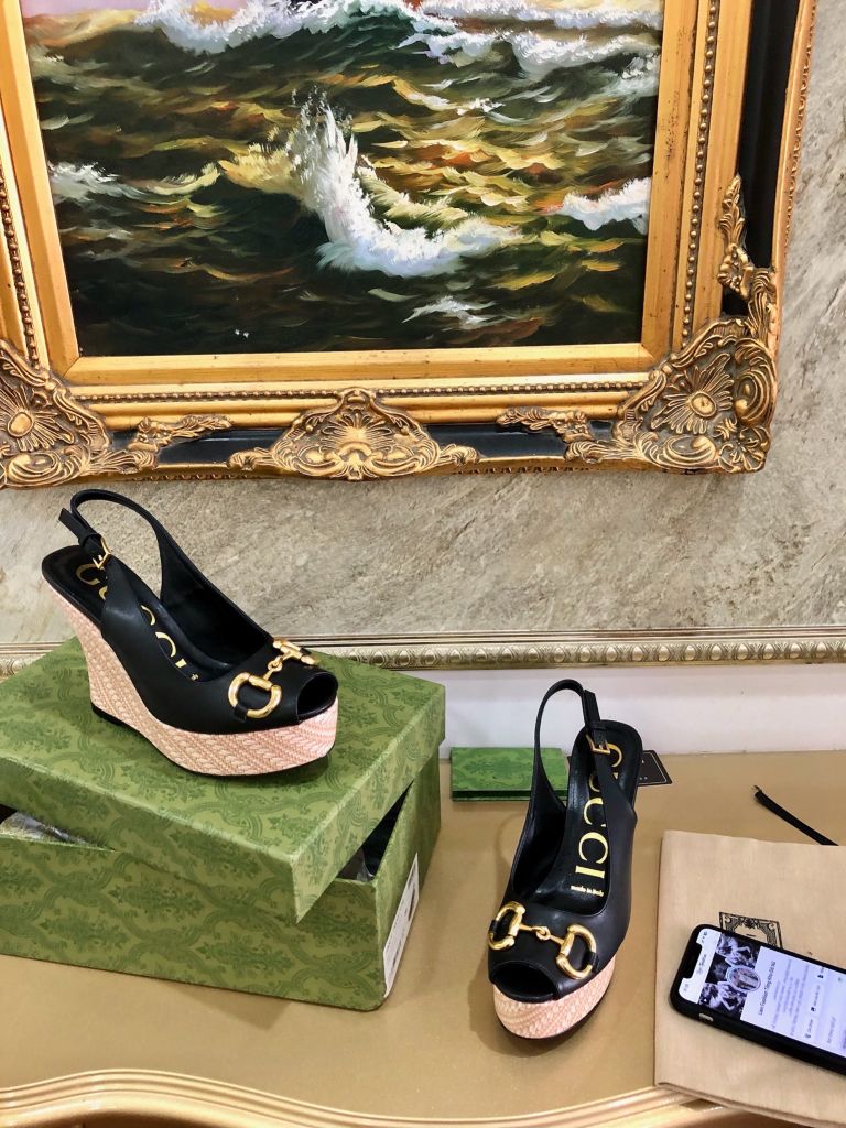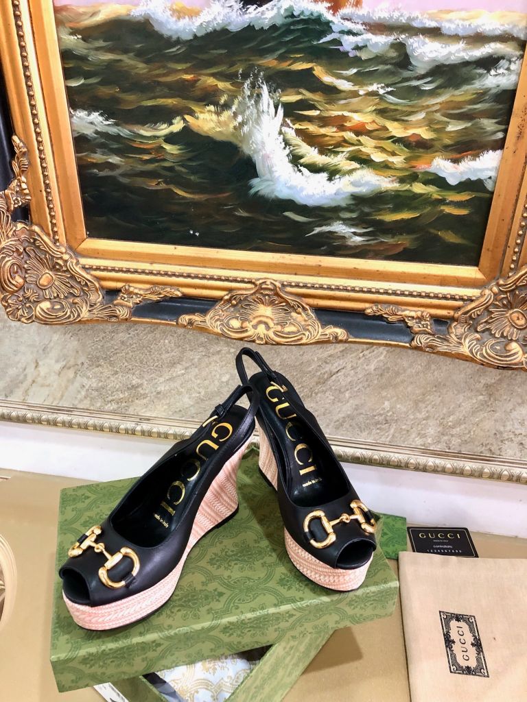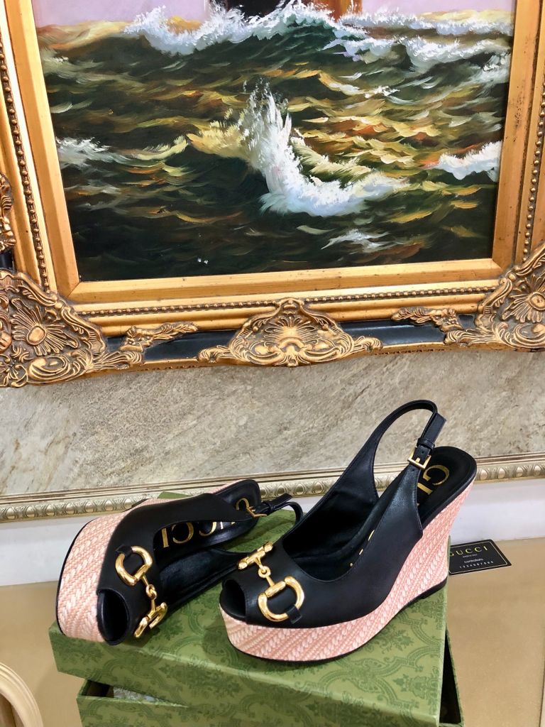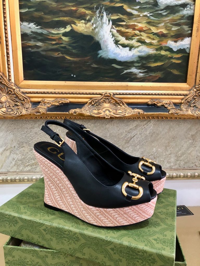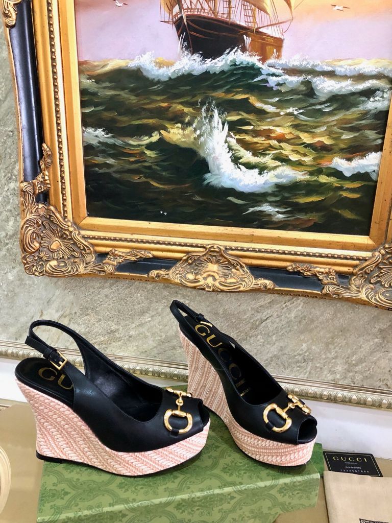 Giày nữ GUCCI* đế xuồng hoạ tiết cao 12cm da bò khóa vàng đẹp sang cao cấp 1990k