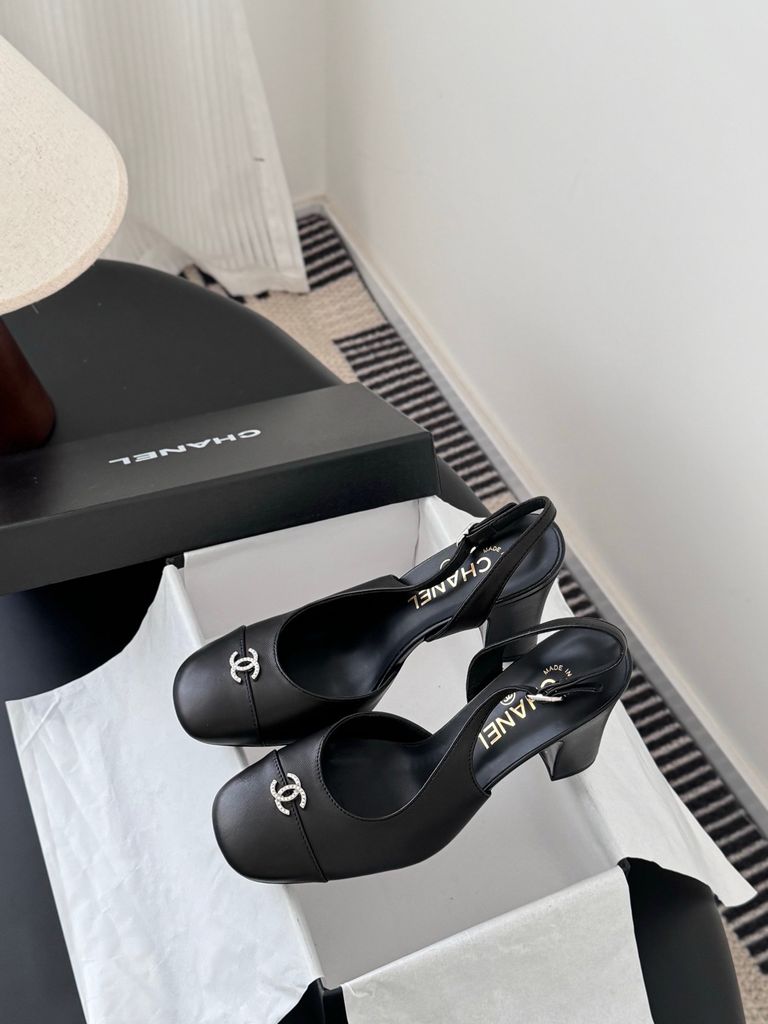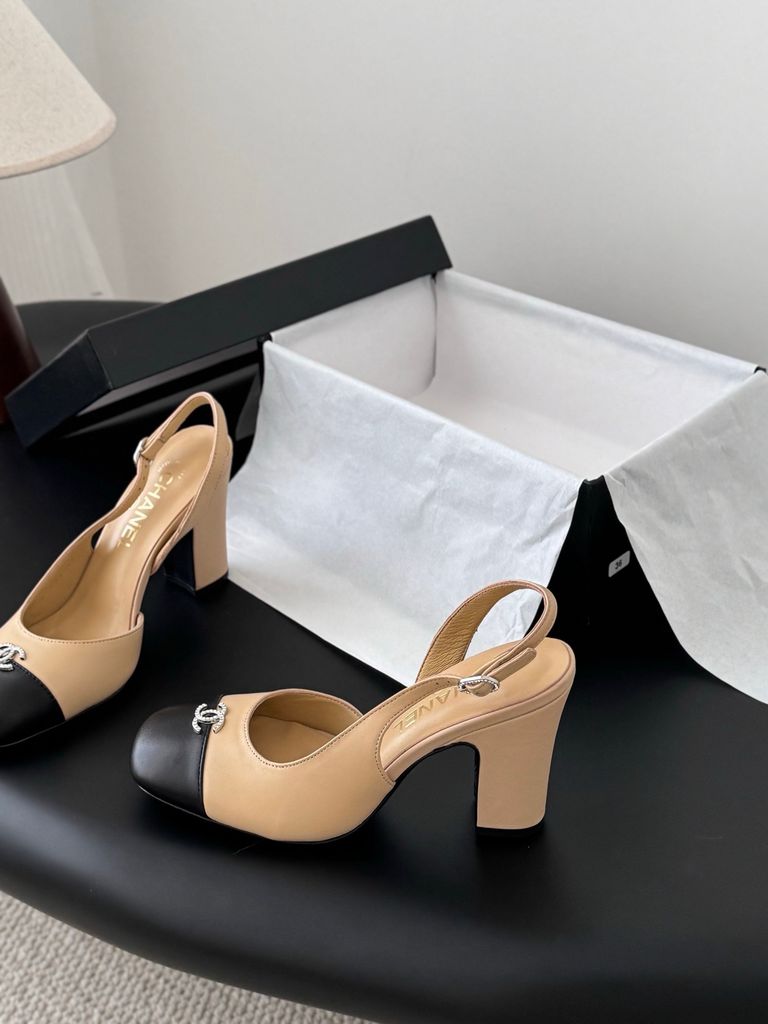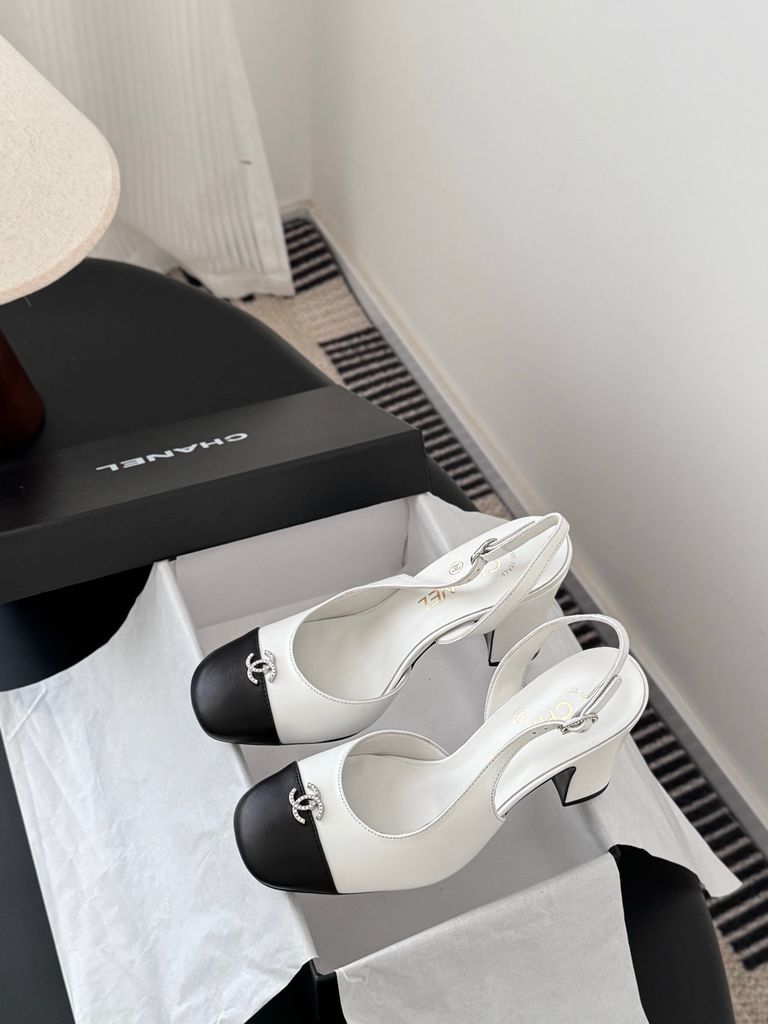 • Phom slingback mũi tròn phối captoe đen kinh điển, tôn bàn chân gọn và thanh.